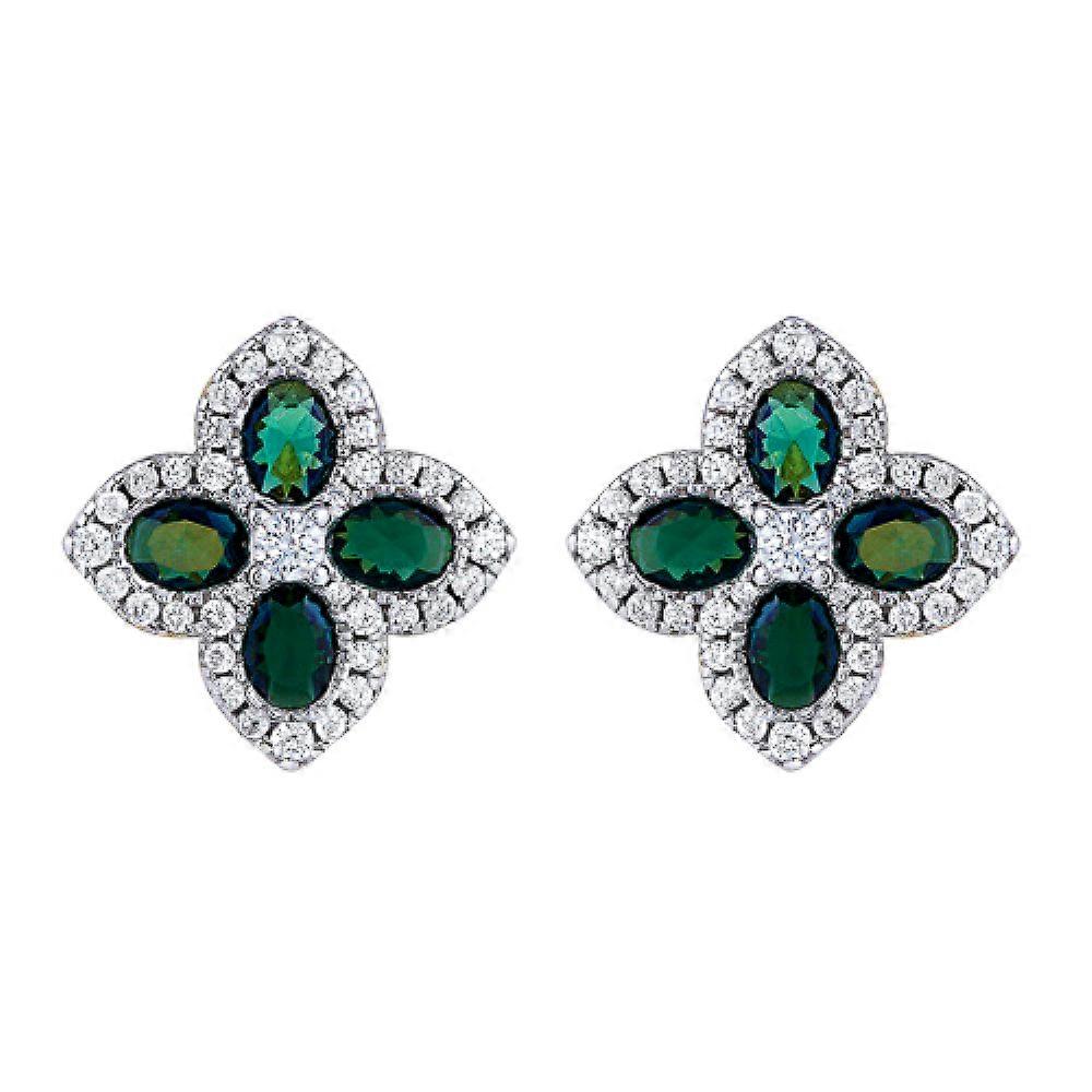 Jewelco London 14k Gold-plated Silver Green Oval CZ Pointed Quatrefoil Clover Stud Earrings