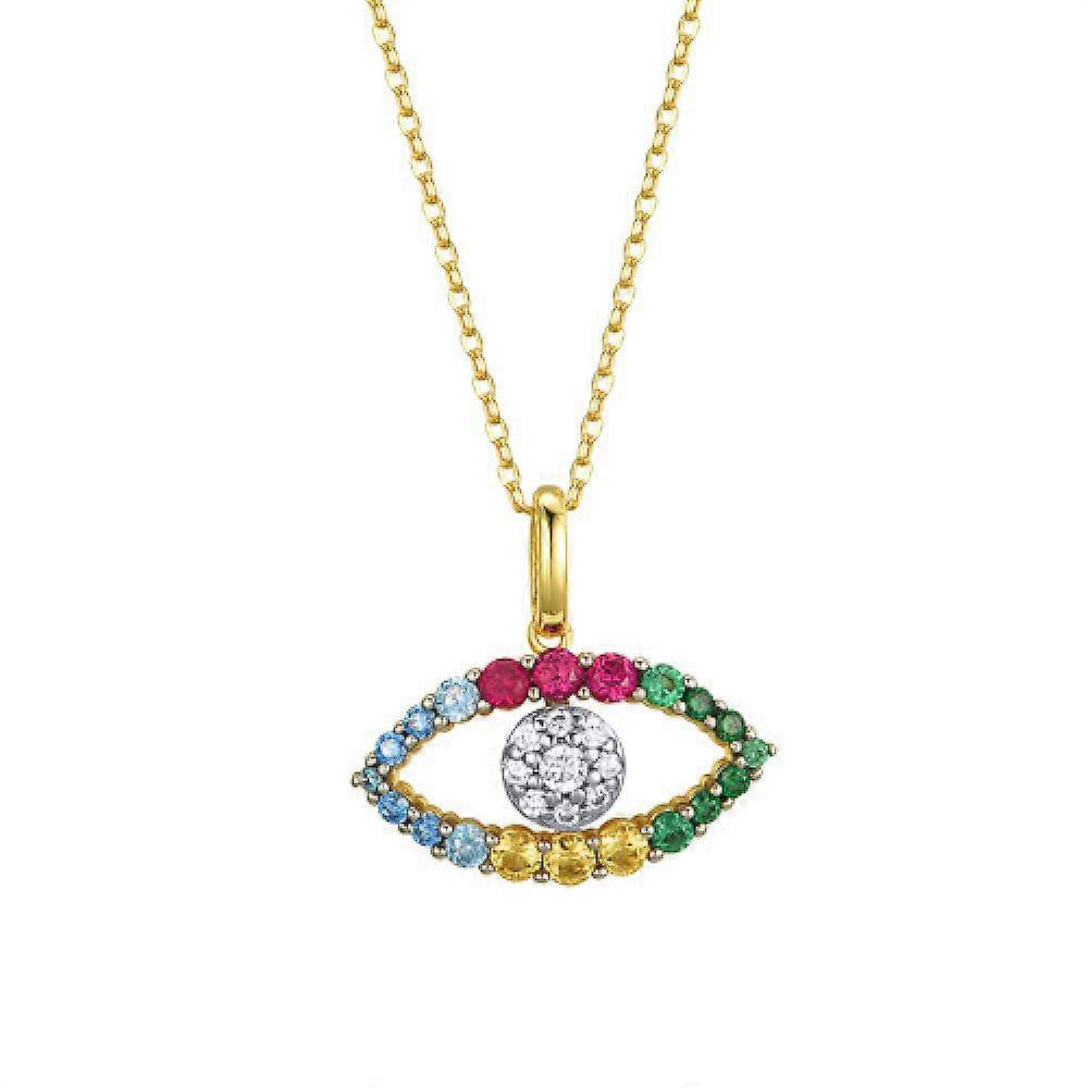 Jewelco London 14k Gold-plated Silver Rainbow Round Brilliant CZ Anti Evil Eye Cluster Pendant Necklace