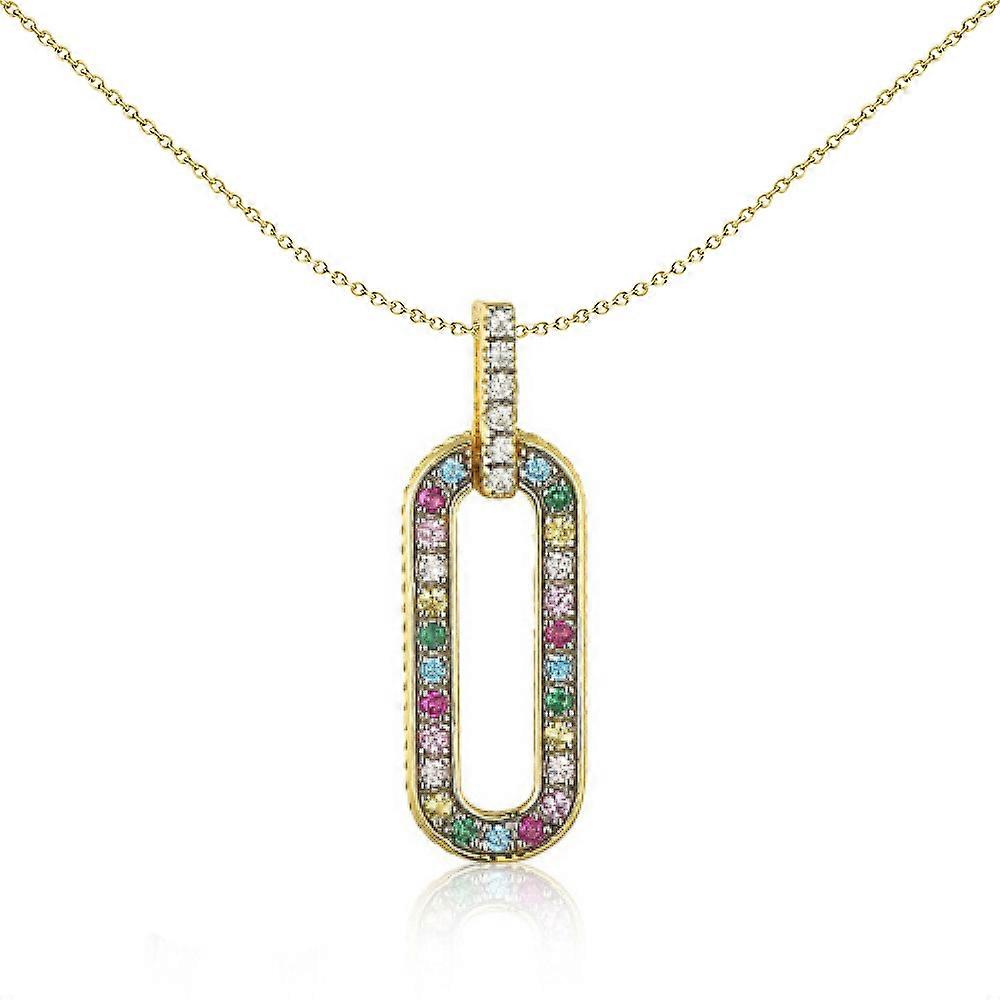Jewelco London 14k Gold-plated Silver Rainbow Round Brilliant CZ Paperclip Oval Halo Charm Pendant