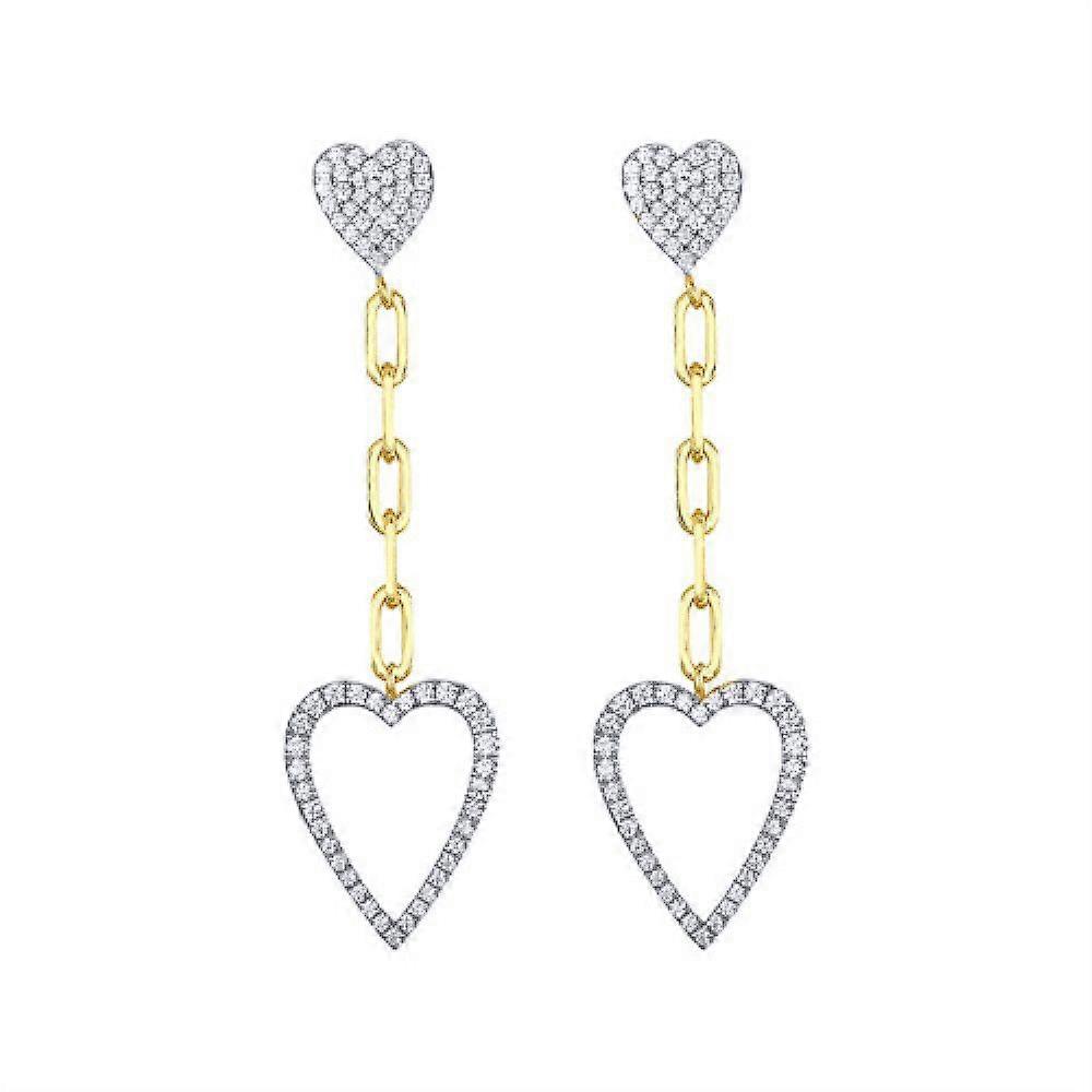 Jewelco London 14k Gold-plated Silver Round CZ Double Love Heart Cable Chain Drop Earrings