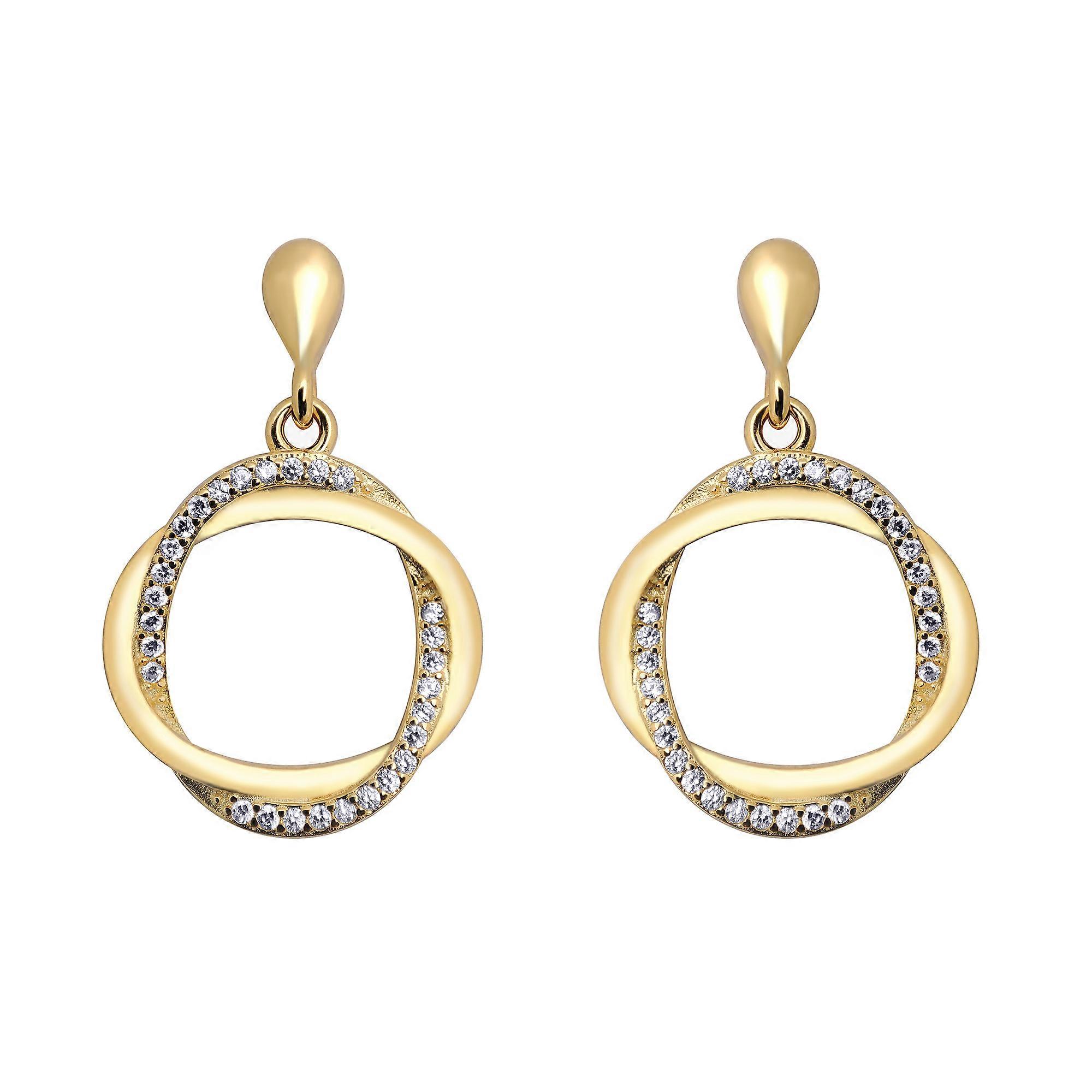Jewelco London 14k Gold-plated Silver Round CZ Interlocked Ovals Twist Hoop Drop Earrings