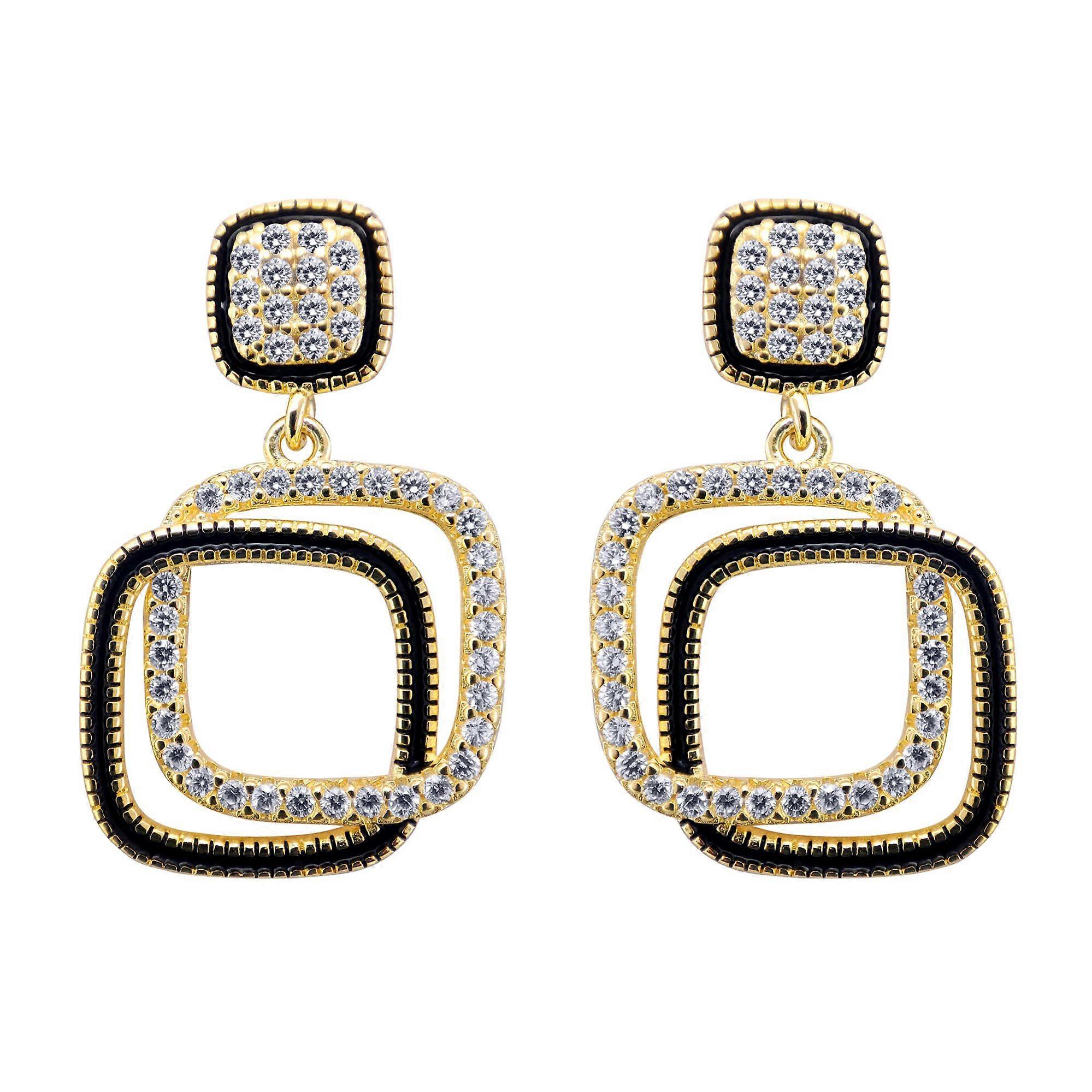 Jewelco London 14k Gold-plated Silver Round CZ Interlocked Squares "Copy" Icon Drop Earrings