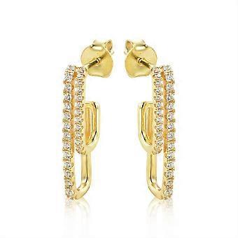Jewelco London 14k Gold-plated Silver Round CZ Paperclip Eternity Line Drop Earrings