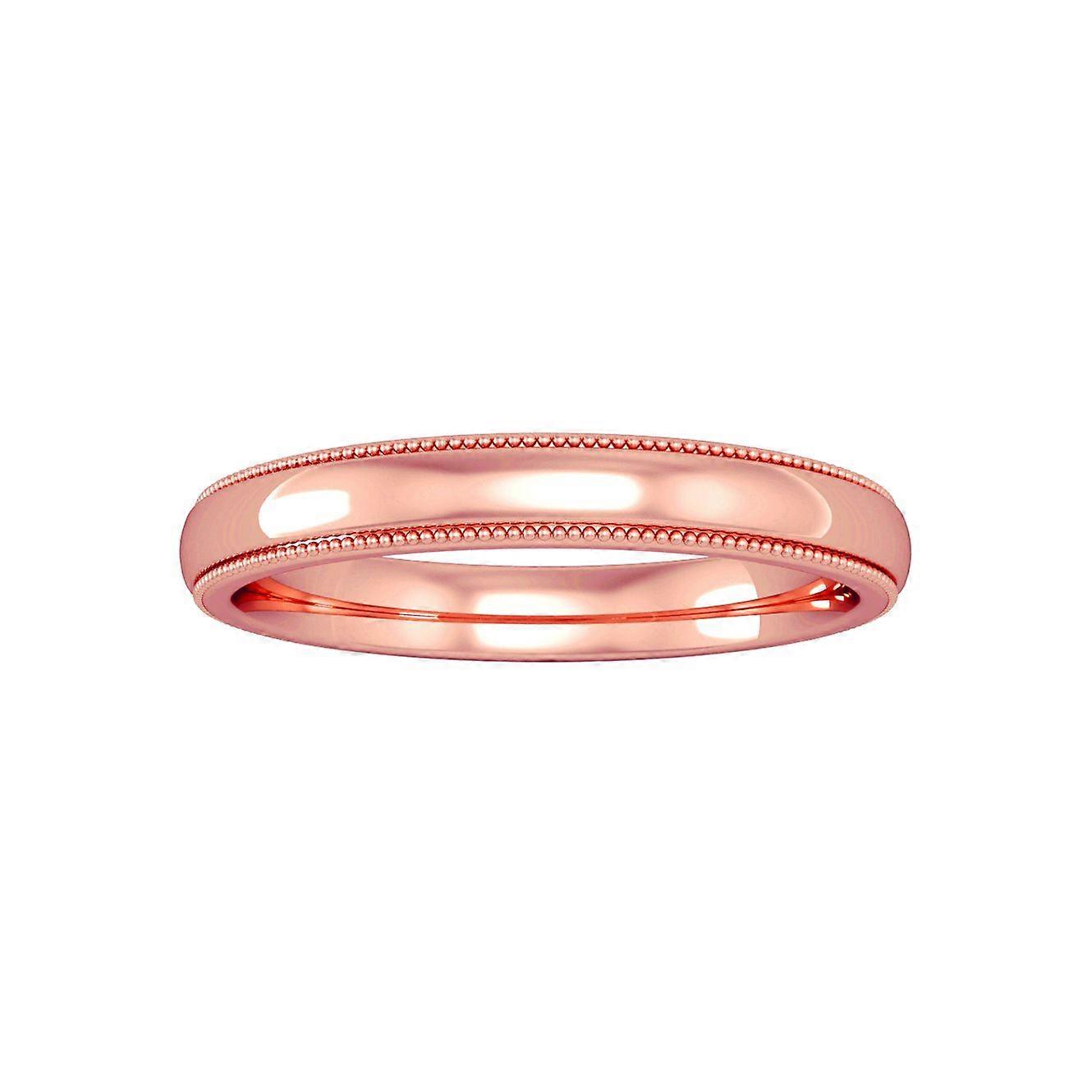 Jewelco London 18ct Pink Rose Gold 3mm Court Mill Grain Wedding Ring