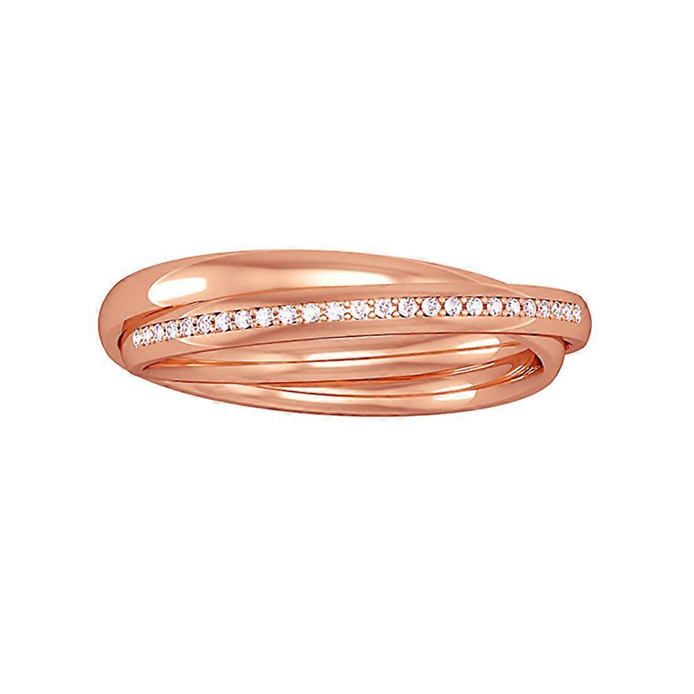 Jewelco London 18ct Rose Gold Diamond 2-Band Court Micro-set Rolling Wedding Ring 2mm 4pts