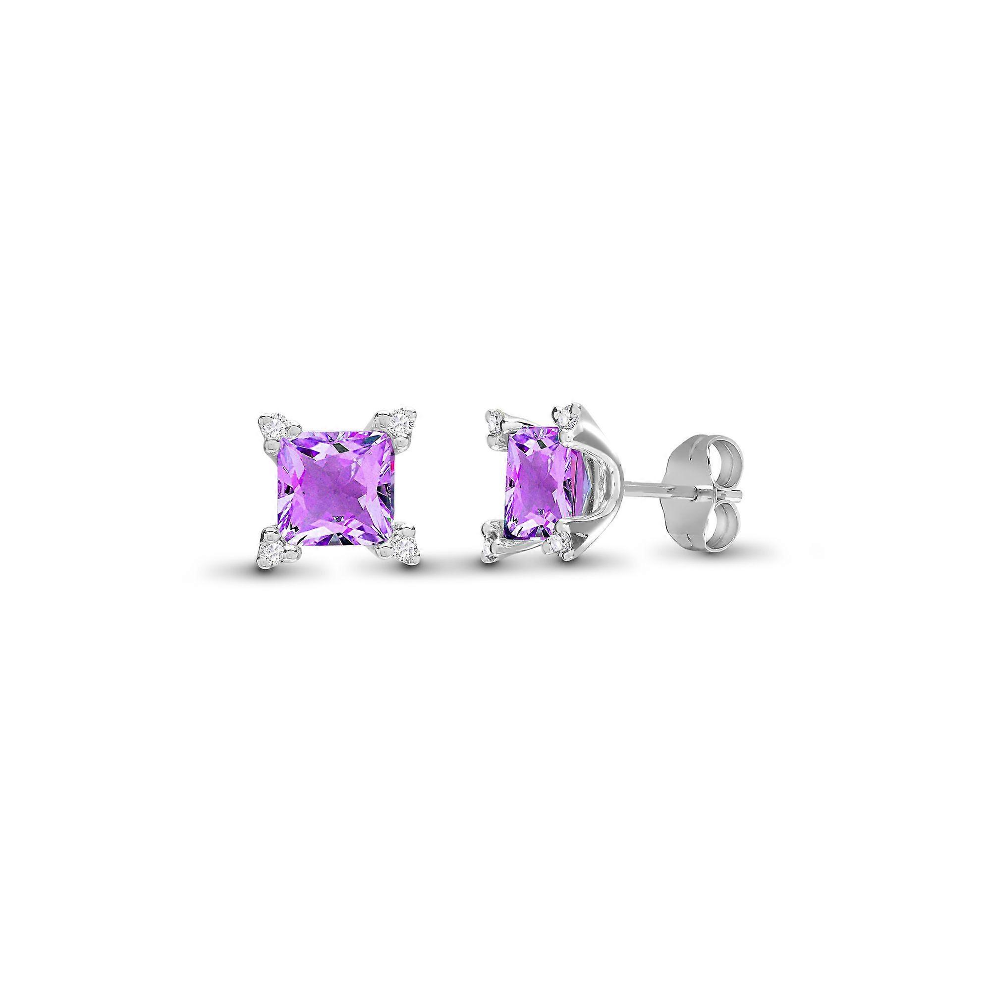 Jewelco London 18ct White Gold 3 Claw Set H I1 0.1ct Diamond and Princess Purple 2.1ct Amethyst Square Stud Earrings