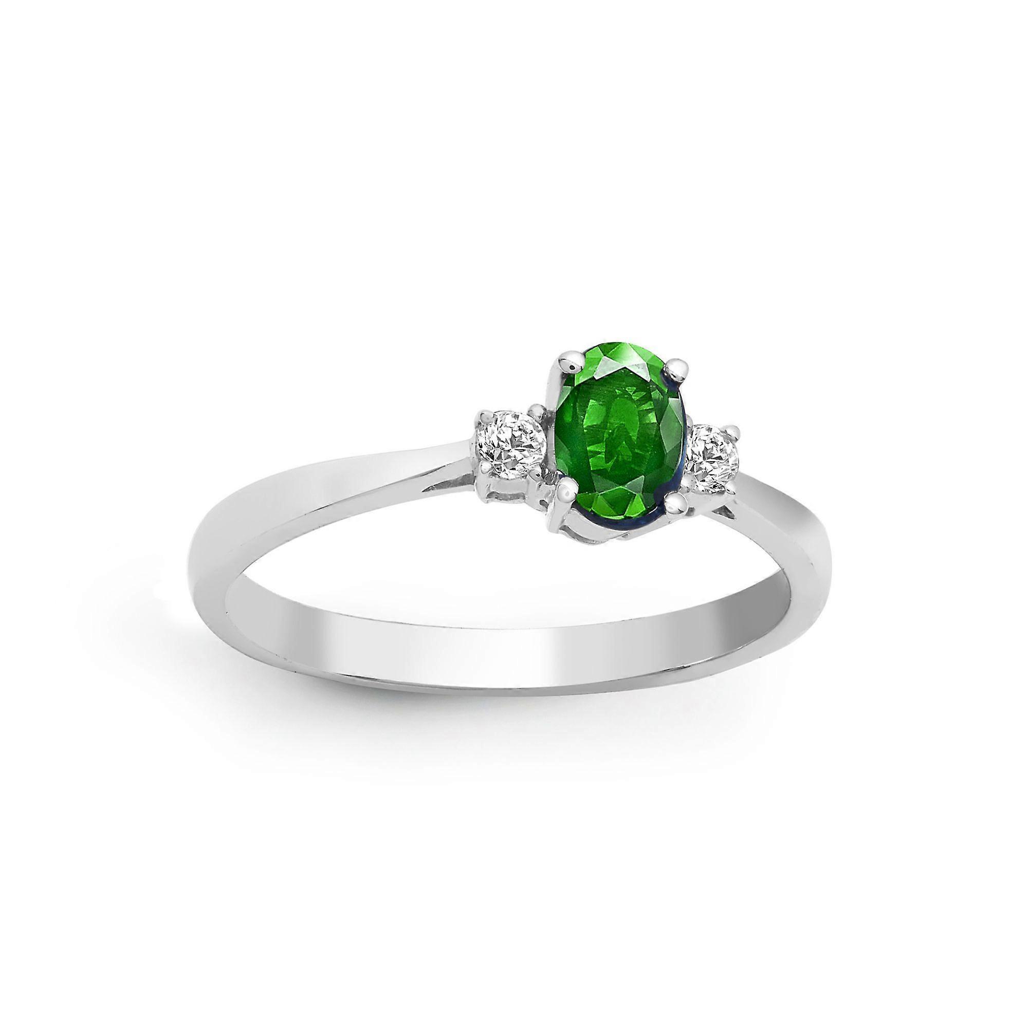 Jewelco London 18ct White Gold 4 Claw Set G SI 0.08ct Diamond and Oval Green 0.5ct Emerald Trilogy Ring 6mm
