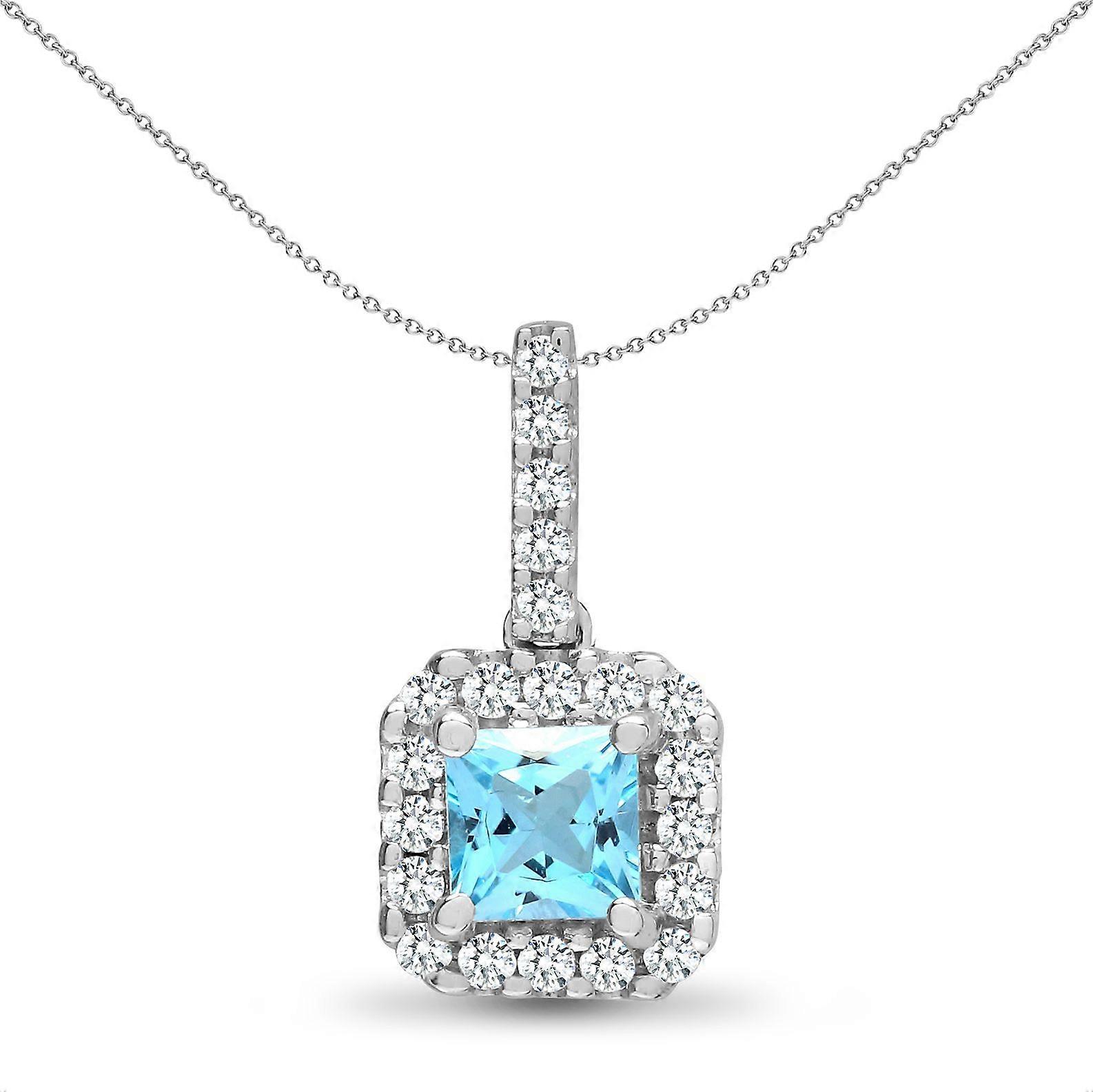 Jewelco London 18ct White Gold 4 Claw Set G SI 0.17ct Diamond and Princess Blue 0.43ct Topaz Square Halo Cluster Pendant