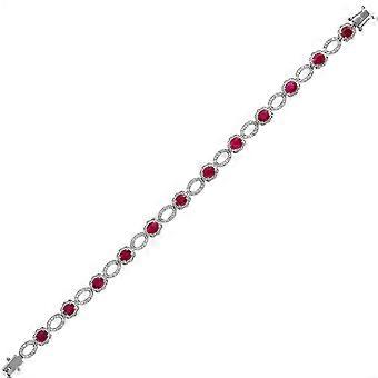 Jewelco London 18ct White Gold 4 Claw Set G SI 0.3ct Diamond and Oval Red 4.95ct Ruby Cluster Tennis Bracelet 6.2mm