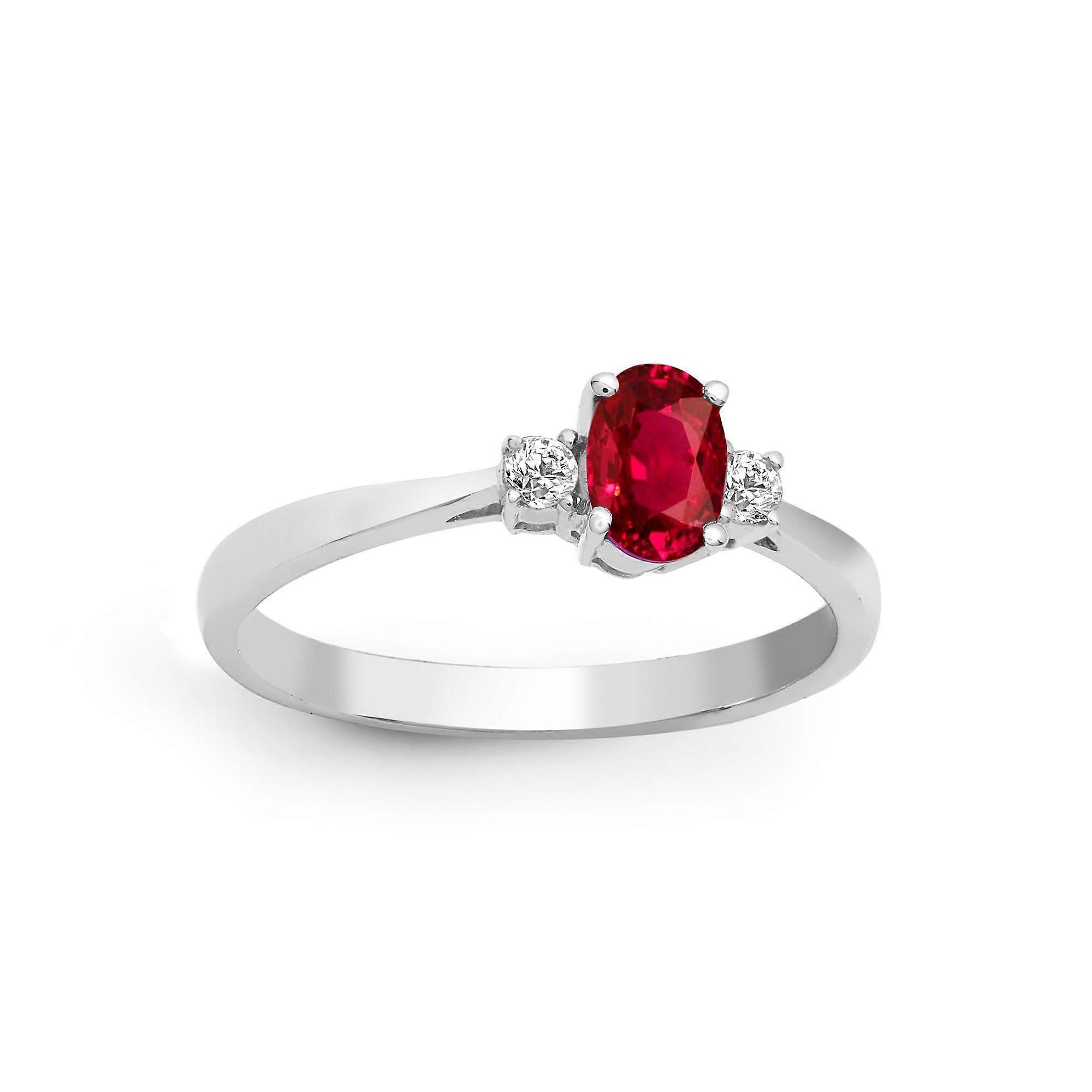 Jewelco London 18ct White Gold 4 Claw Set Round G SI 0.08ct Diamond and Oval Red 0.7ct Ruby Trilogy Ring 6mm