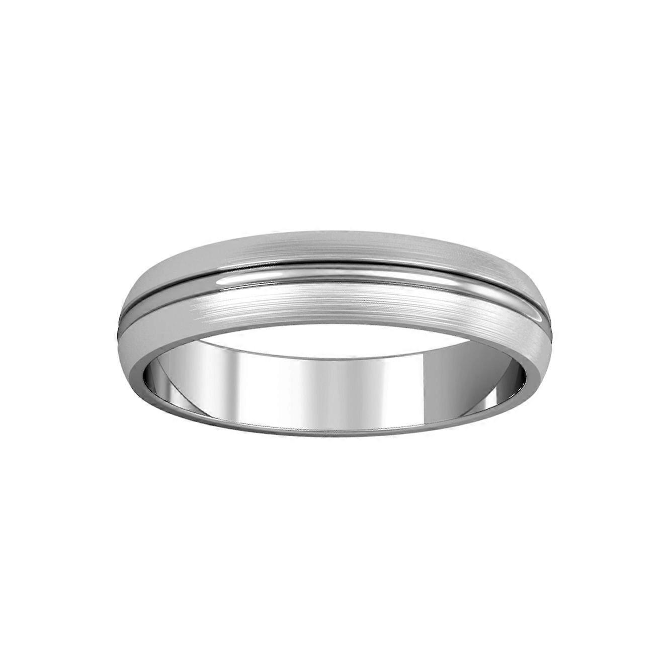 Jewelco London 18ct White Gold - 4mm Essential D-Shaped Single Rib and Satin Edged Band Wedding Ring