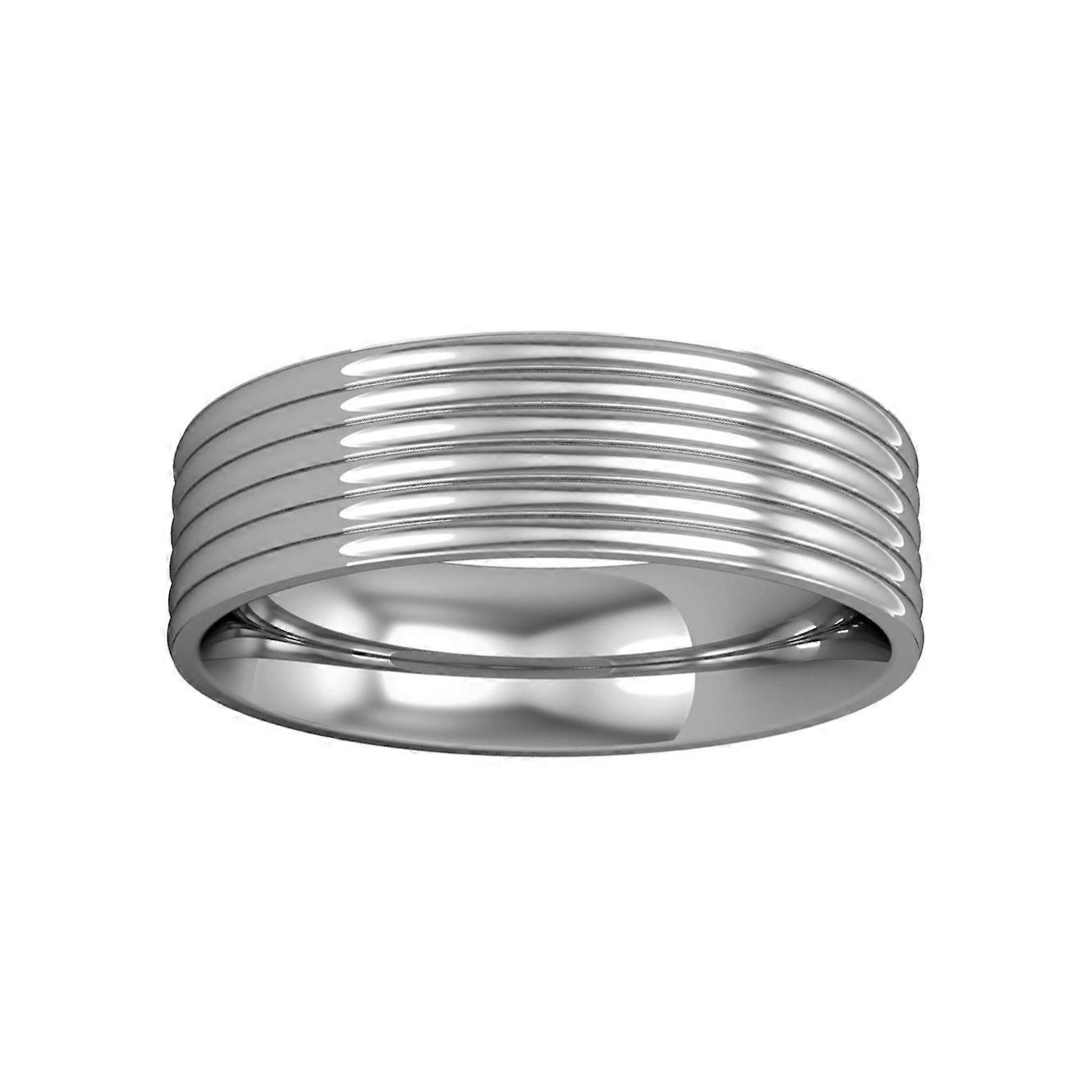 Jewelco London 18ct White Gold - 6mm Essential Flat-Court Ribbed Bevelled Band Wedding Wedding Ring