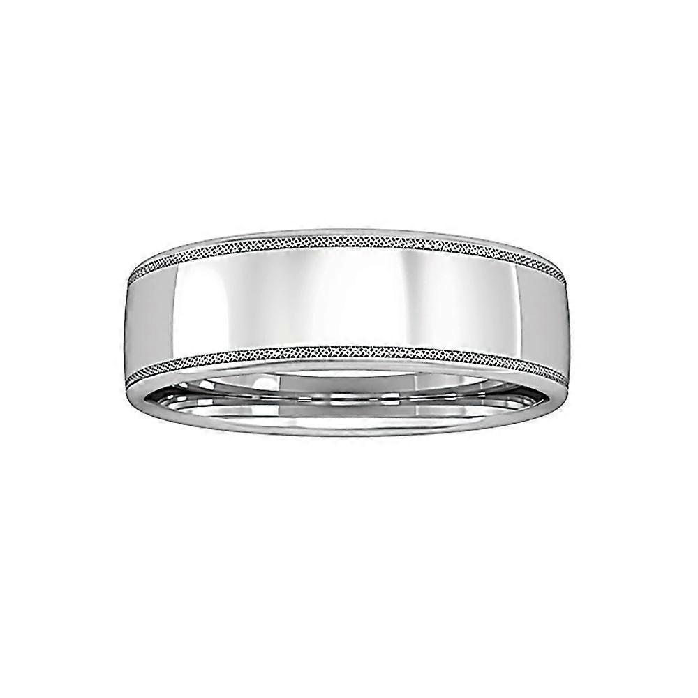 Jewelco London 18ct White Gold Bombe Court Lattice Edge Band Wedding Ring 6mm