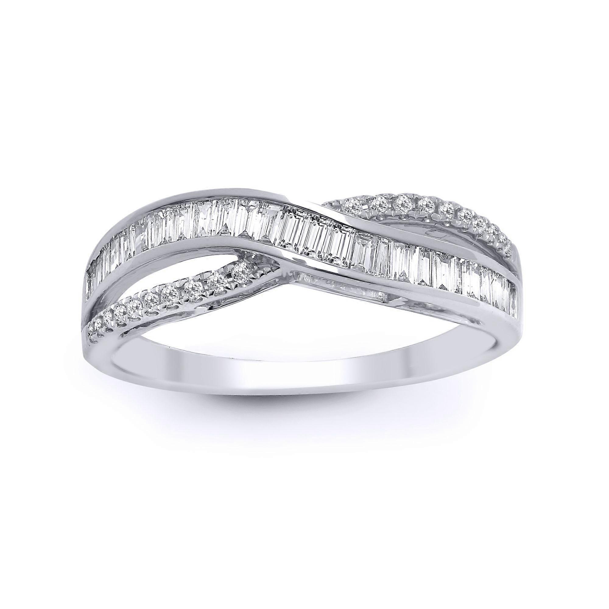 Jewelco London 18ct White Gold Channel Set Baguette G SI1 0.48ct Diamond Crossover Waves Eternity Ring 5mm