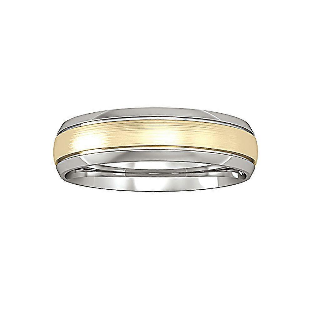 Jewelco London 18ct White Gold Court Satin Brushed Step Band Wedding Ring 5mm