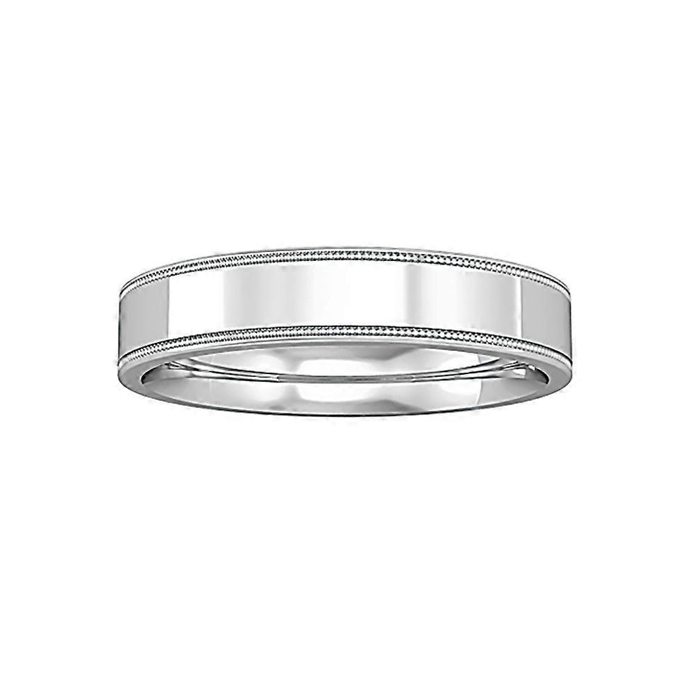 Jewelco London 18ct White Gold Flat-Court Beaded Edge Band Wedding Ring 4mm