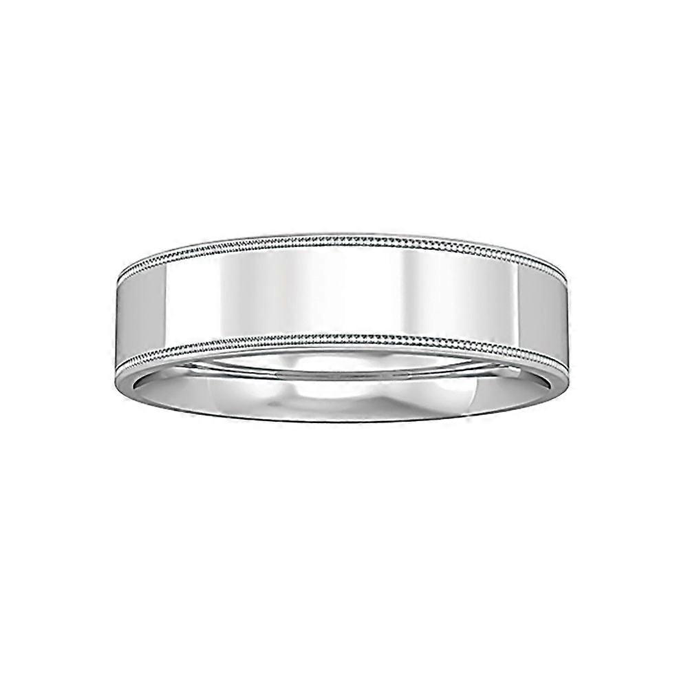 Jewelco London 18ct White Gold Flat-Court Beaded Edge Band Wedding Ring 5mm