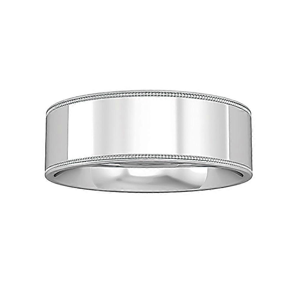 Jewelco London 18ct White Gold Flat-Court Beaded Edge Band Wedding Ring 7mm