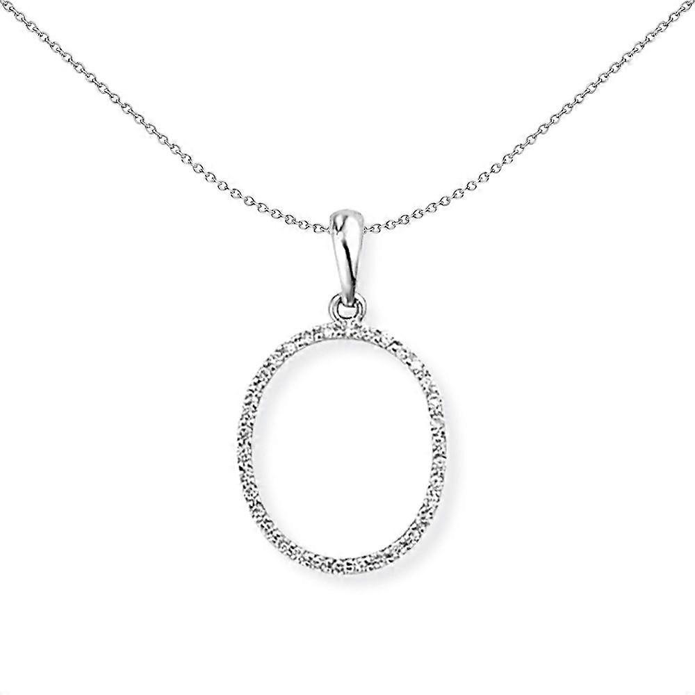 Jewelco London 18ct White Gold Pave Diamond Initial Charm Pendant Letter O 12mm x 20mm