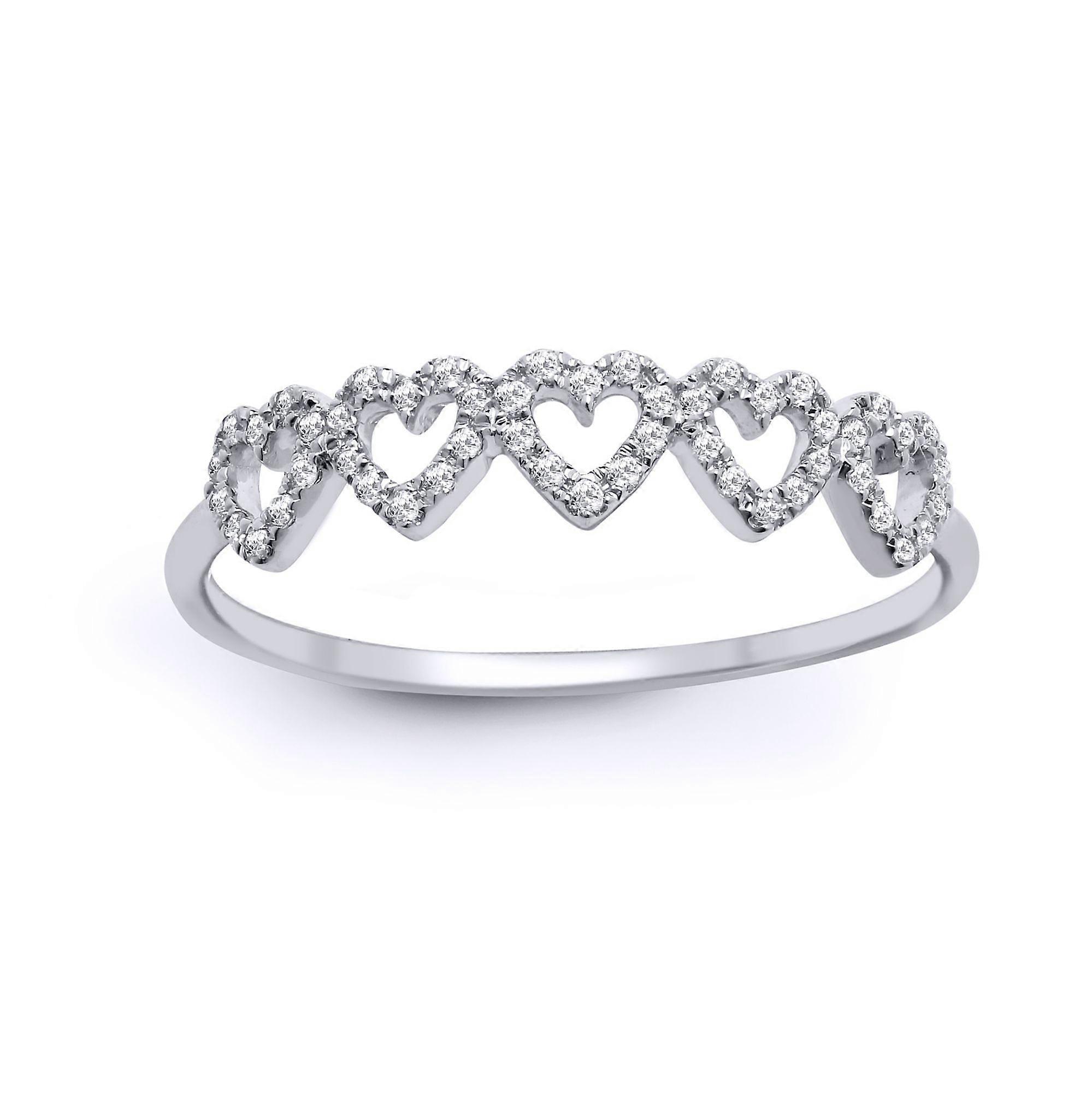 Jewelco London 18ct White Gold Pave Set Round G SI1 0.15ct Diamond Pentalogy Love Heart Halo Eternity Ring 4mm