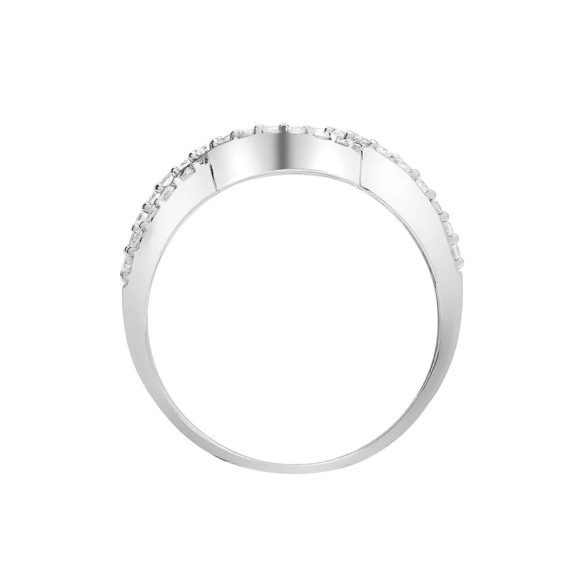 Jewelco London 18ct White Gold Pave Set Round G SI1 0.39ct Diamond Crossover Wavy Wishbone Eternity Ring 5mm