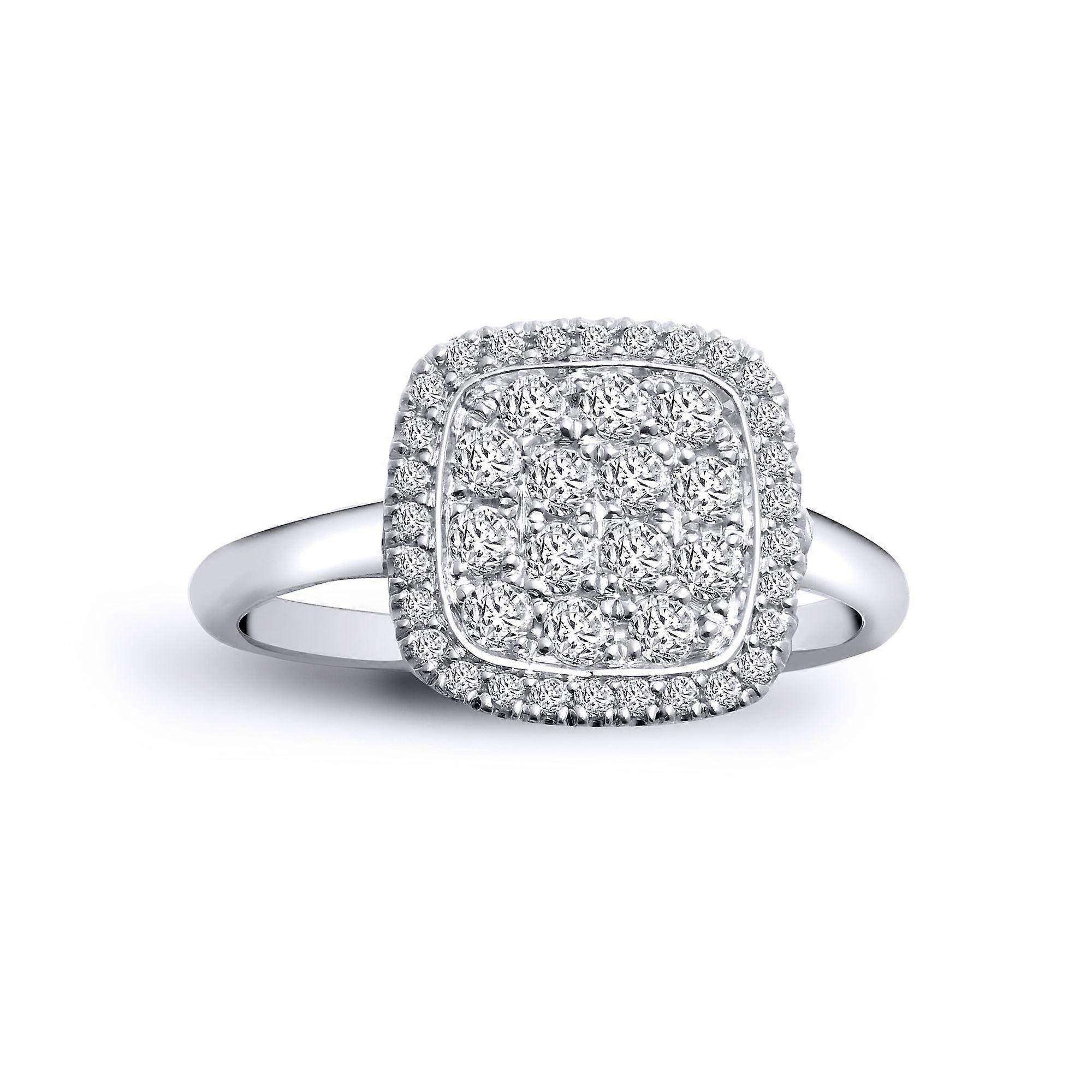 Jewelco London 18ct White Gold Pave Set Round H SI 0.55ct Diamond Square Cushion Cluster Cluster Ring 12mm