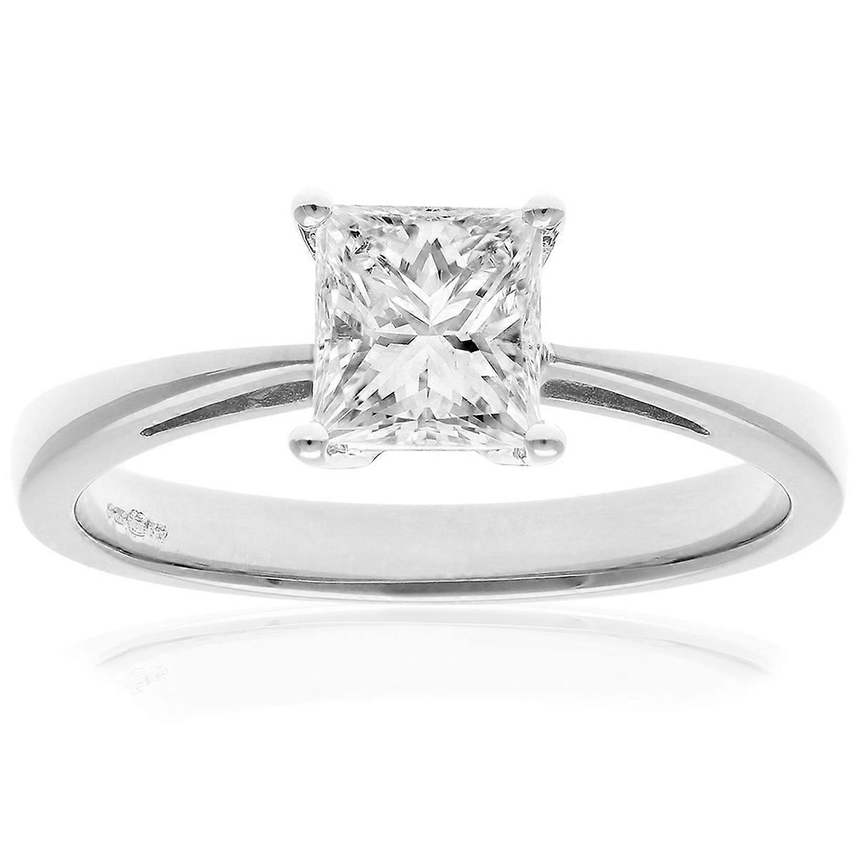 Jewelco London 18ct White Gold Princess 1ct Diamond 4 Claw Solitaire Engagement Ring 6mm