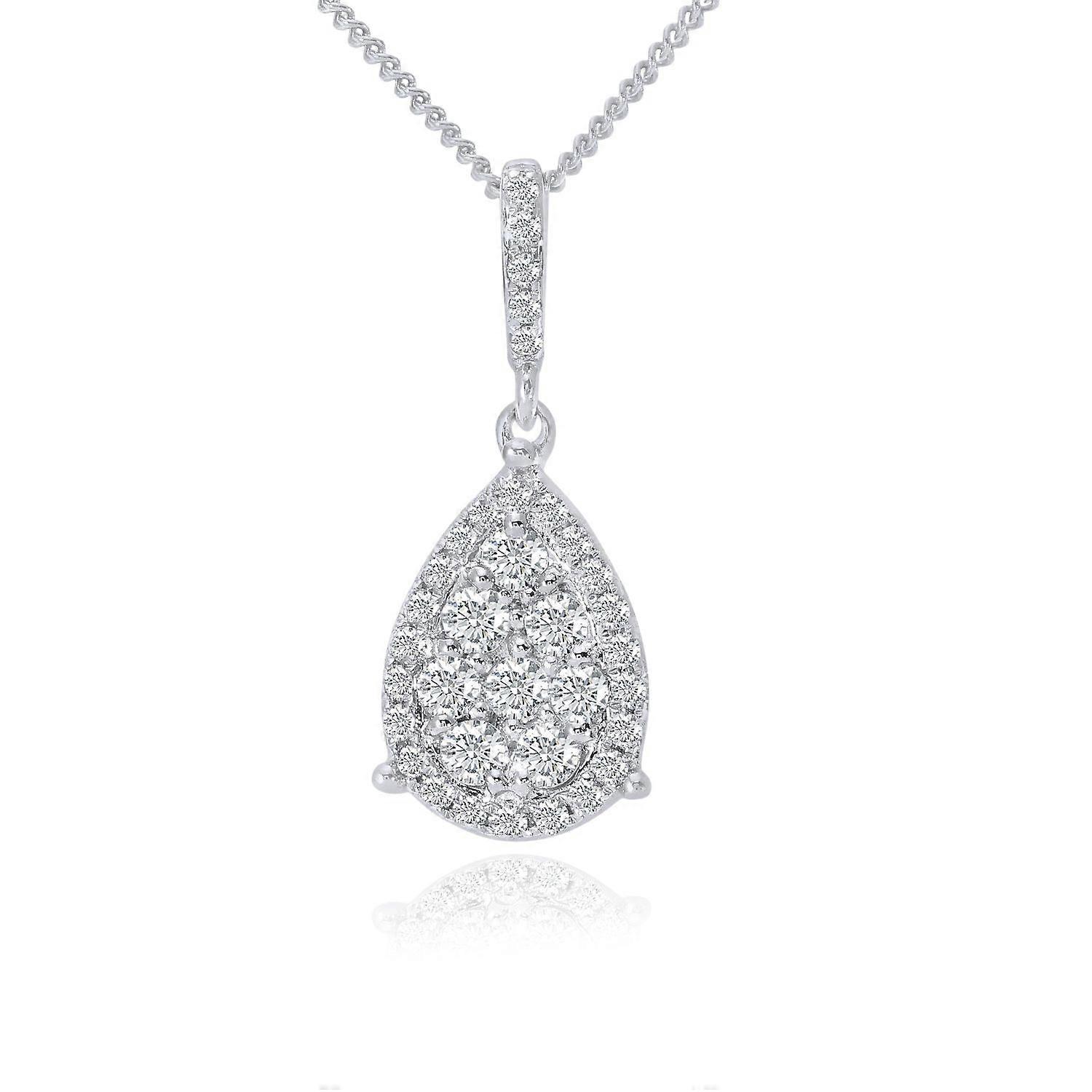 Jewelco London 18ct White Gold Round 0.3ct Diamond Halo Pendant Necklace 16 inch 42cm