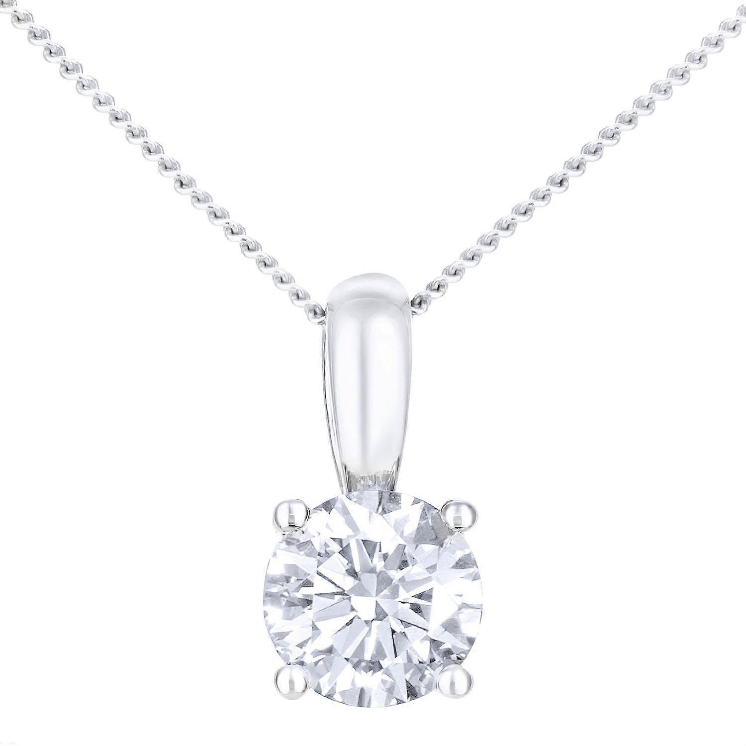 Jewelco London 18ct White Gold Round 1/2ct Diamond Solitaire Pendant Necklace 18 inch 46cm