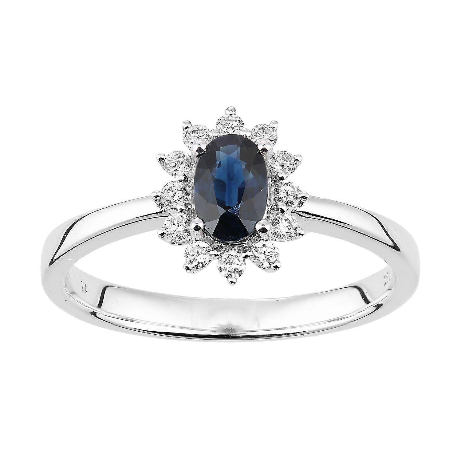 Jewelco London 18ct White Gold Round 15pts Diamond Oval 0.65ct Sapphire Royal Oval Classic Clock Cluster Ring
