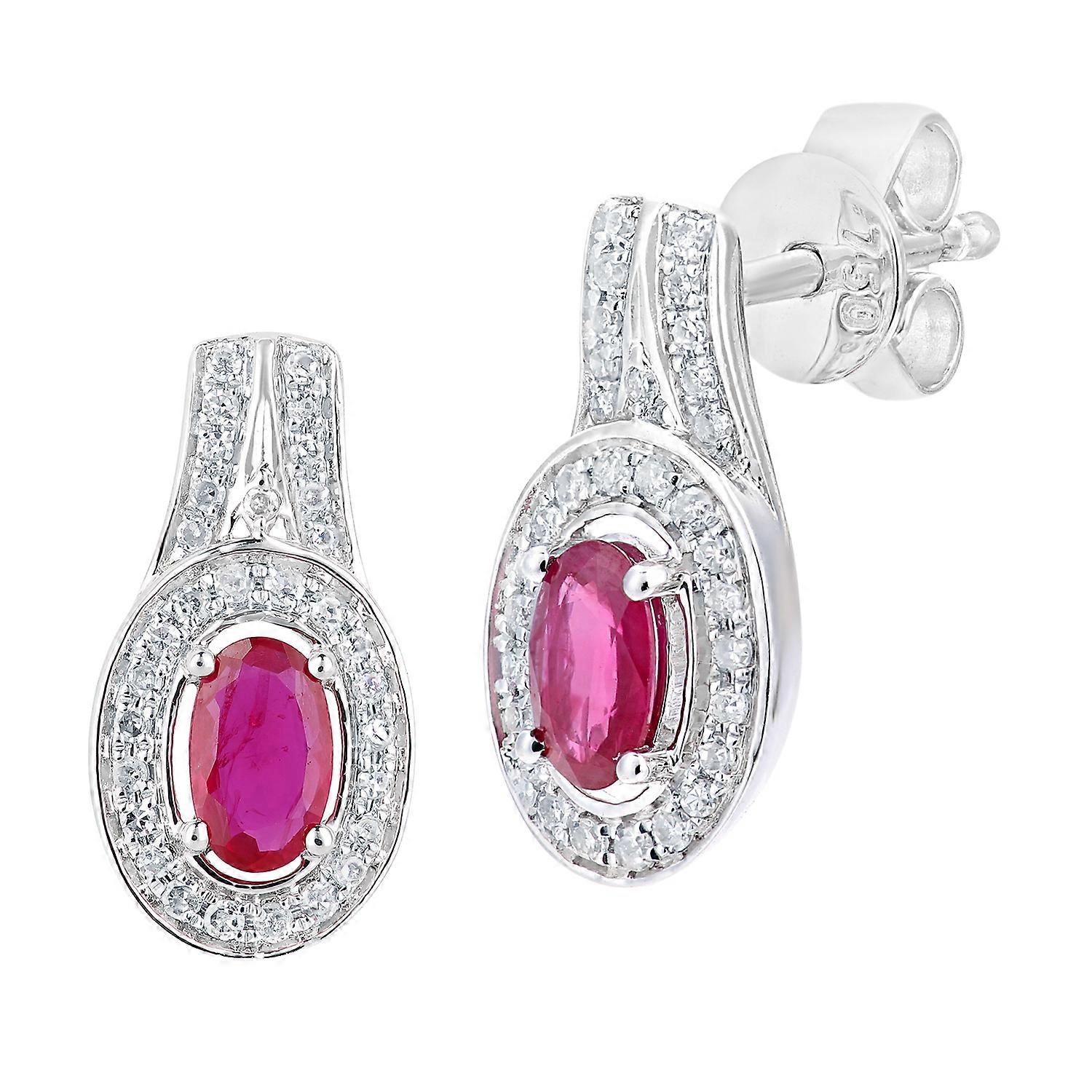 Jewelco London 18ct White Gold Round 15pts Diamond Oval 1/2ct Ruby Cluster Drop Earrings