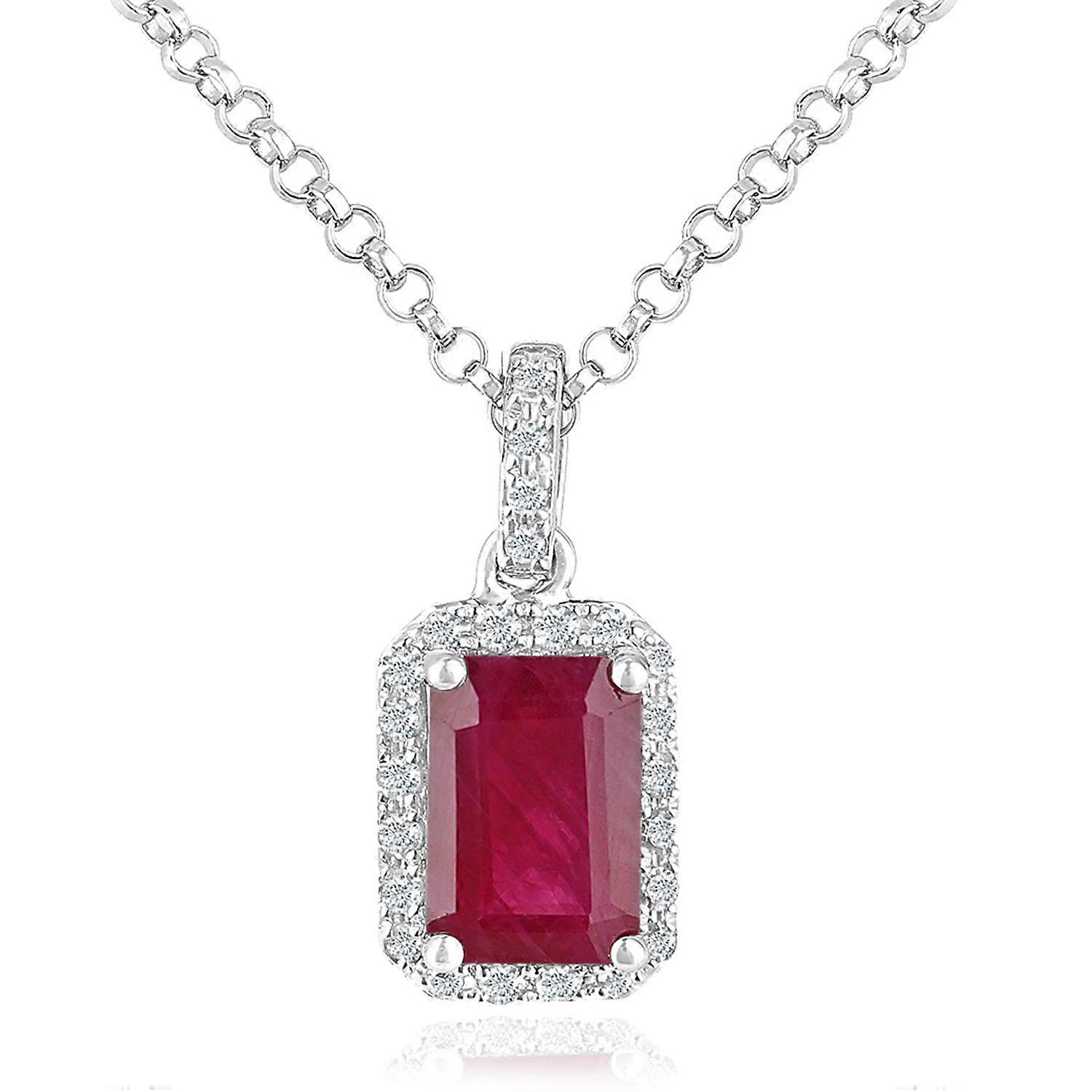 Jewelco London 18ct White Gold Round 5pts Diamond Octagon 0.6ct Ruby Cluster Pendant Necklace 16 inch 42cm