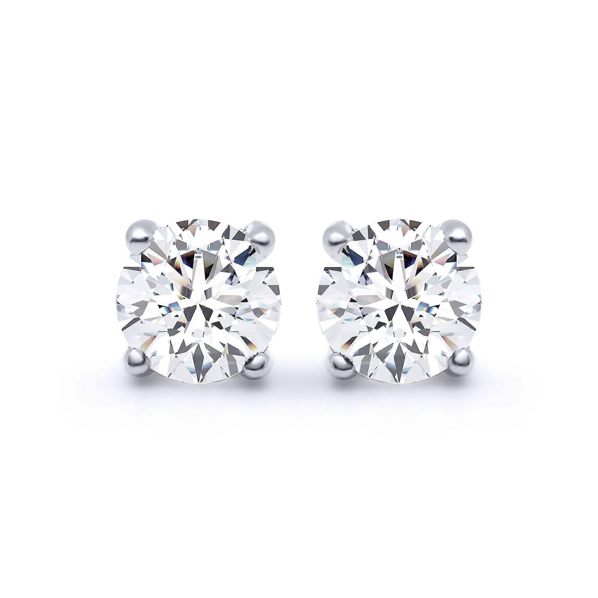Jewelco London 18ct White Gold Round Brilliant Lab Grown Diamond Solitaire Stud Earrings, 2.00ct