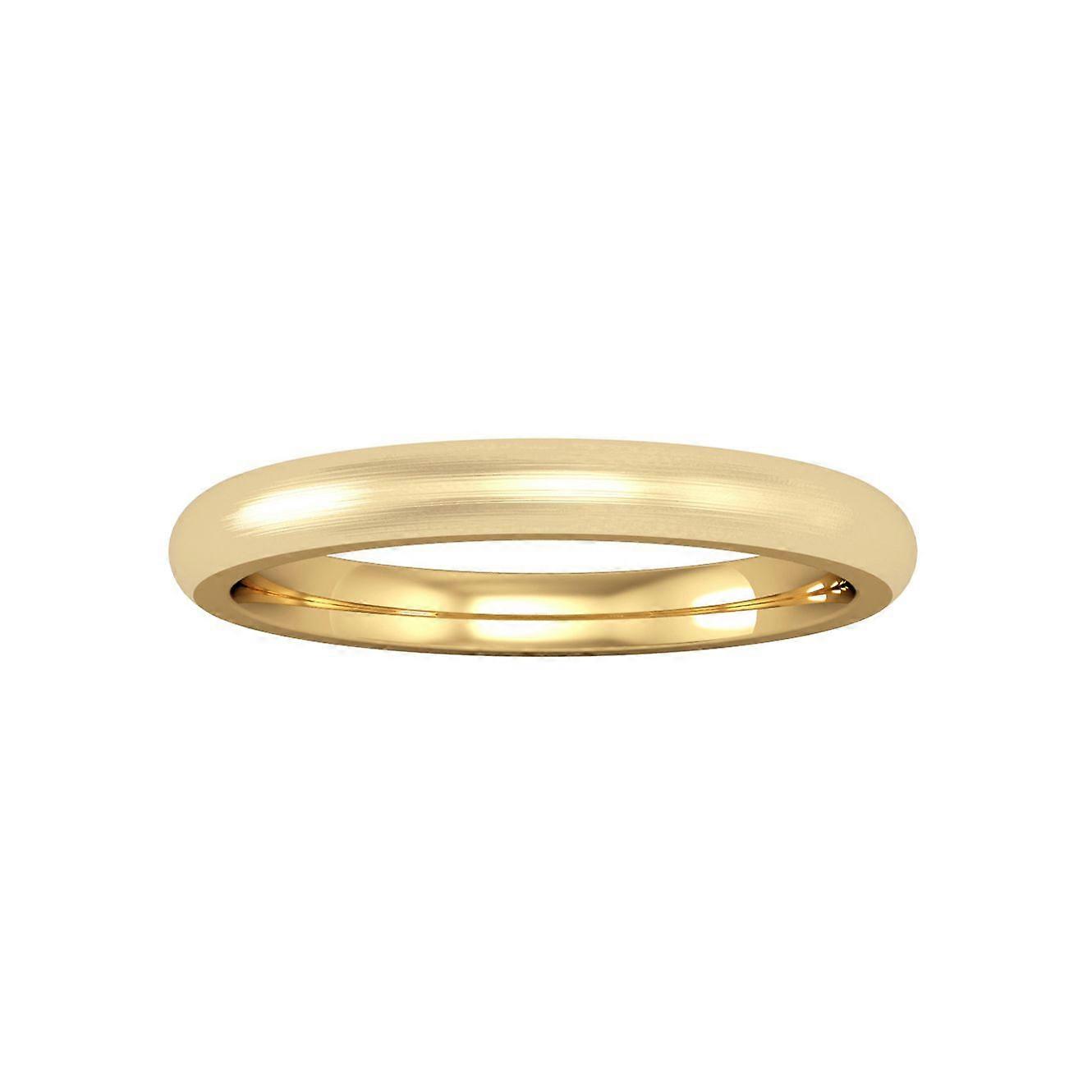 Jewelco London 18ct Yellow Gold 2.5mm Court Premium Satin-Brushed Wedding Ring