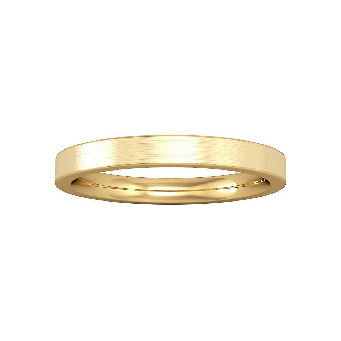 Jewelco London 18ct Yellow Gold 2.5mm Flat Court Premium Brushed Wedding Ring