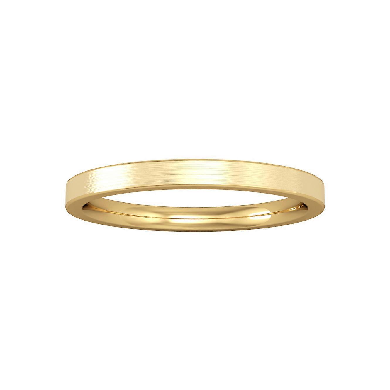 Jewelco London 18ct Yellow Gold 2mm Flat Court Premium Brushed Wedding Ring