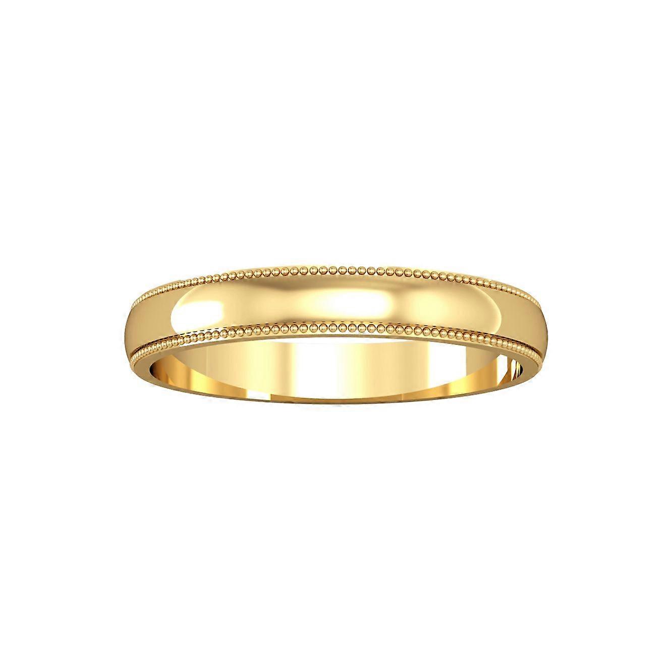 Jewelco London 18ct Yellow Gold - 3mm Essential D-Shaped Mill Grain Edge Band Commitment / Wedding Ring