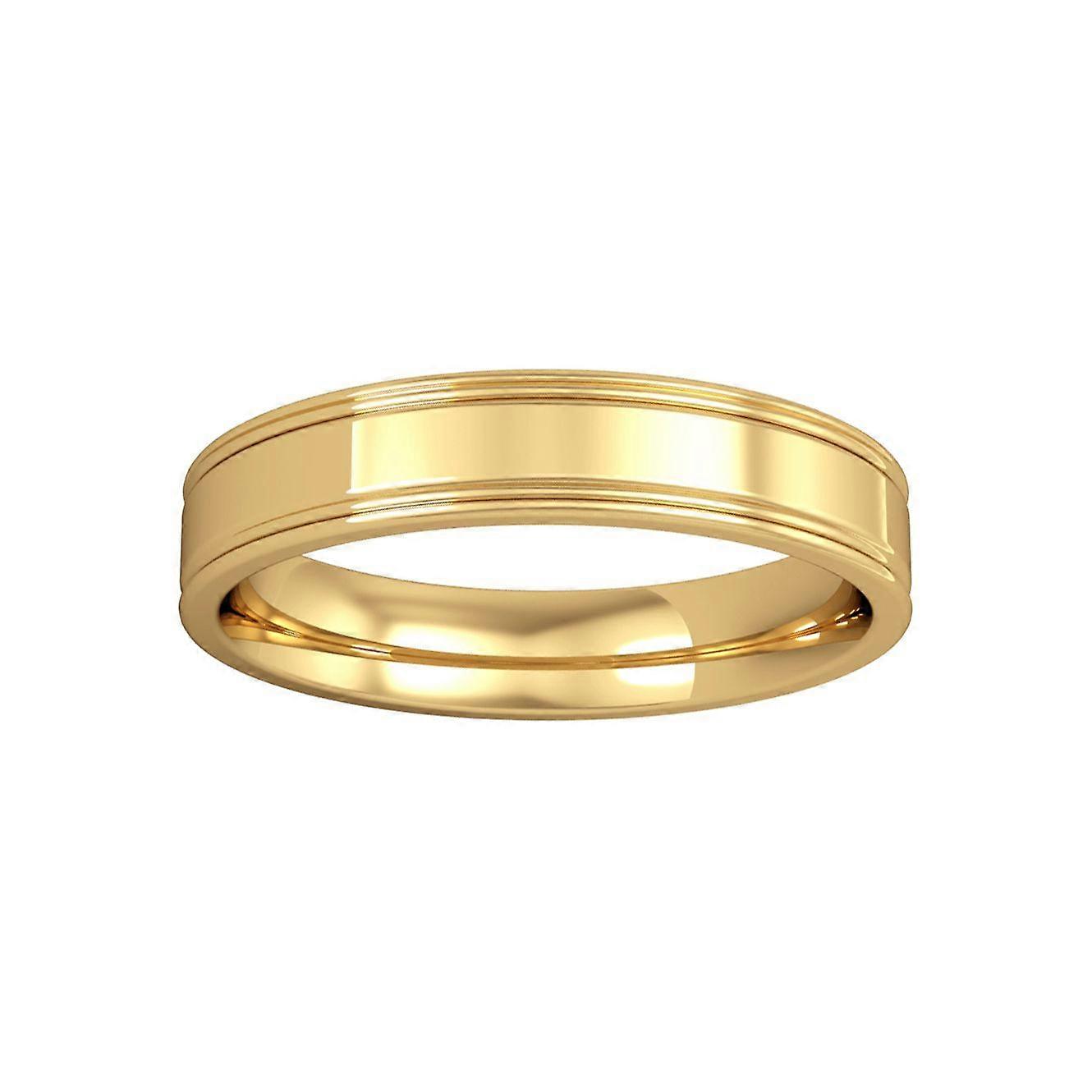 Jewelco London 18ct Yellow Gold - 4mm Essential Flat-Court Track Edge Band Commitment / Wedding Ring