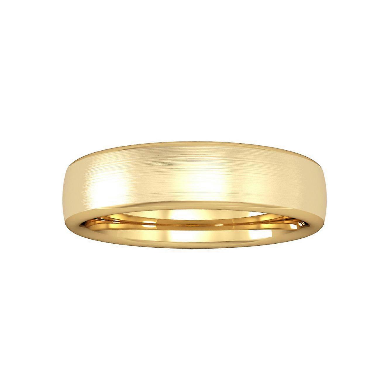 Jewelco London 18ct Yellow Gold 5mm Bombe Court Premium Brushed Wedding Ring