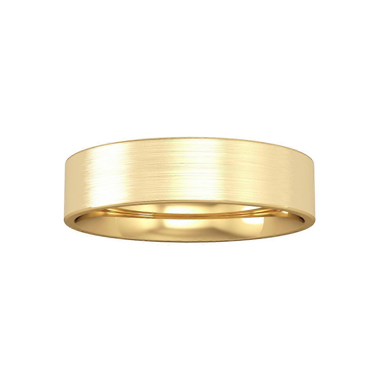 Jewelco London 18ct Yellow Gold 5mm Flat Court Satin-Brushed Wedding Ring