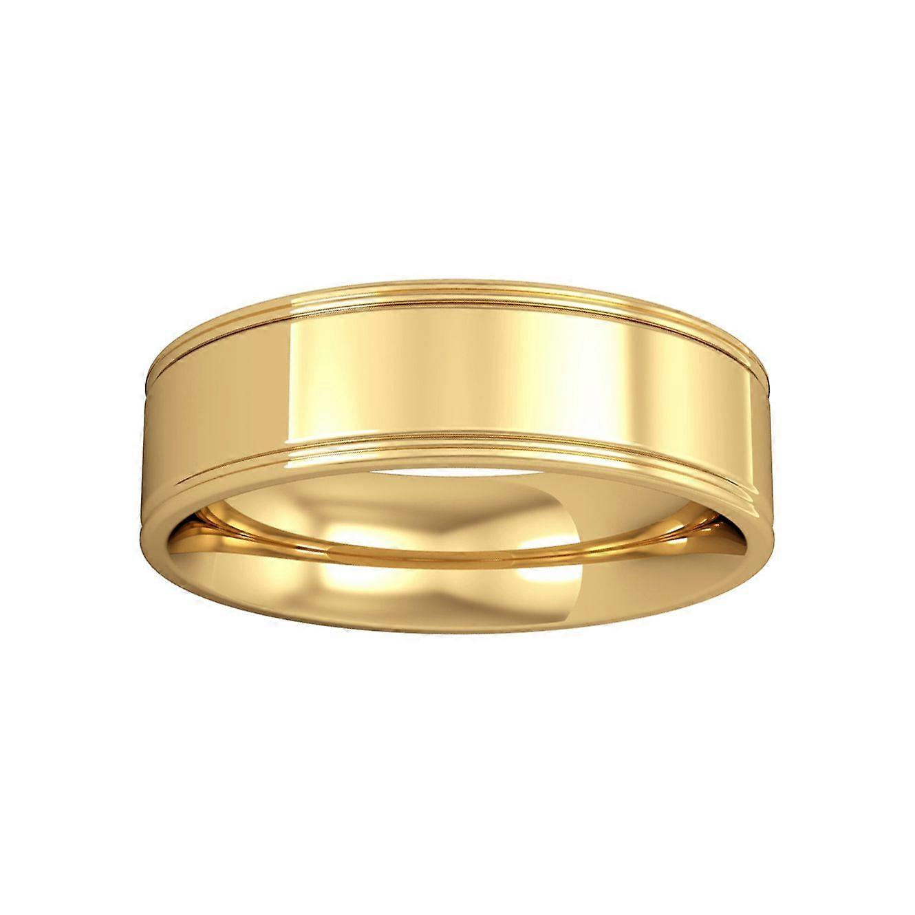 Jewelco London 18ct Yellow Gold - 6mm Essential Flat-Court Track Edge Band Commitment / Wedding Ring