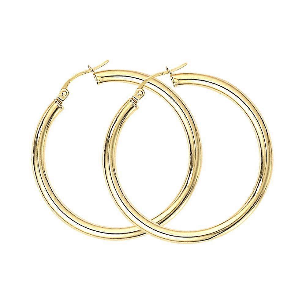 Jewelco London 18ct Yellow Gold Classic Round Tube Hoop Earrings 3mm