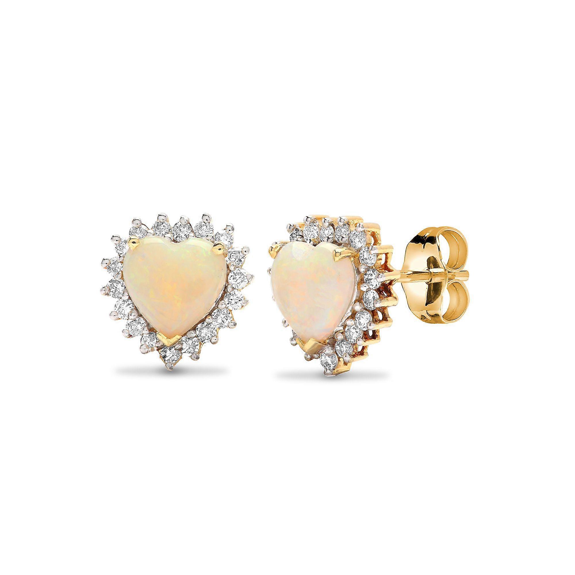 Jewelco London 18ct Yellow Gold Cluster Set Round G SI 0.29ct Diamond and Heart Opal Love Heart Halo Stud Earrings