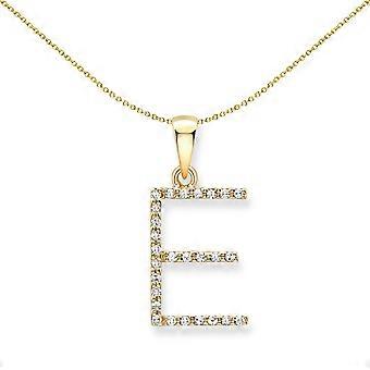 Jewelco London 18ct Yellow Gold Diamond Initial Charm Pendant Letter E 8mm x 18mm