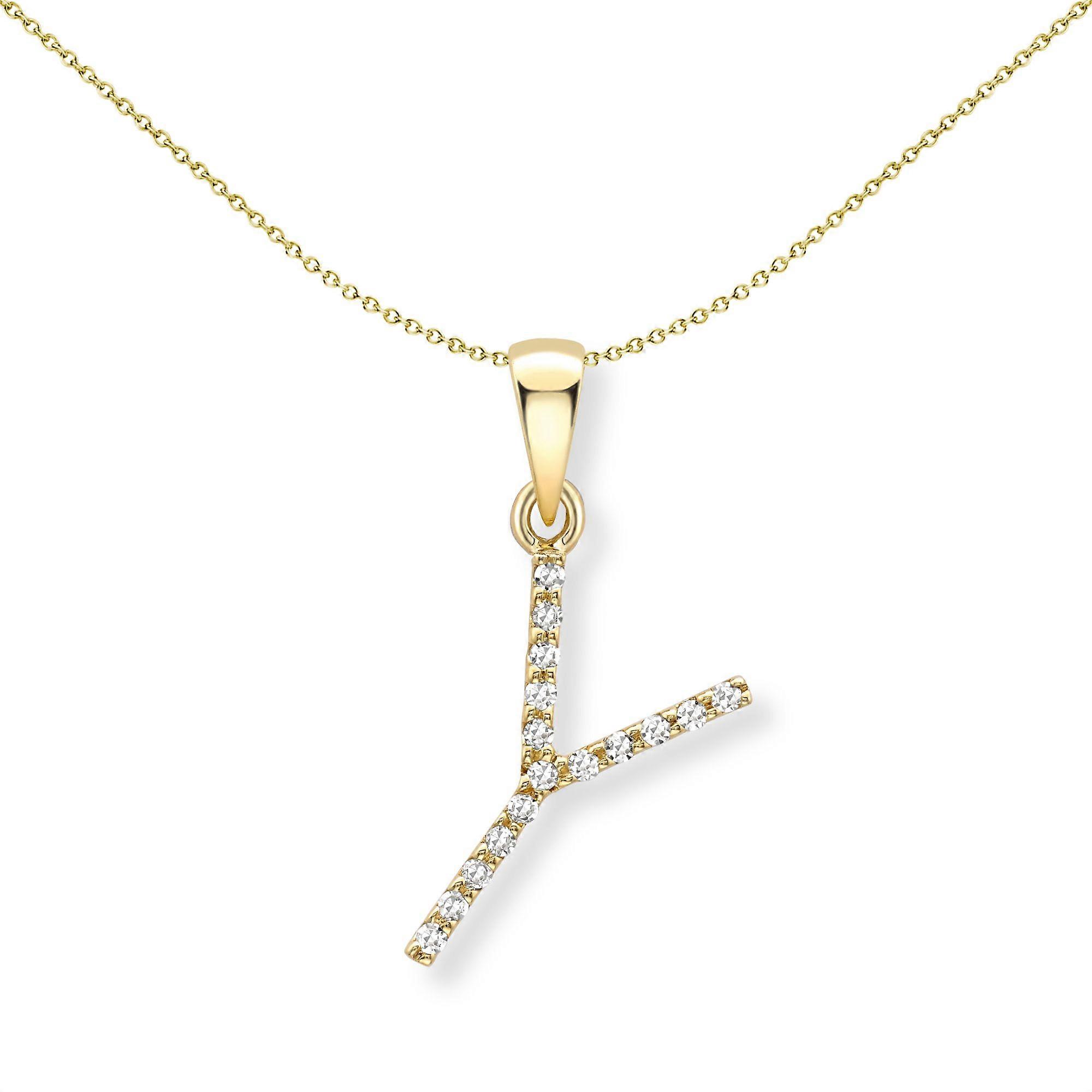 Jewelco London 18ct Yellow Gold Diamond Initial Charm Pendant Letter Y 7mm x 15mm