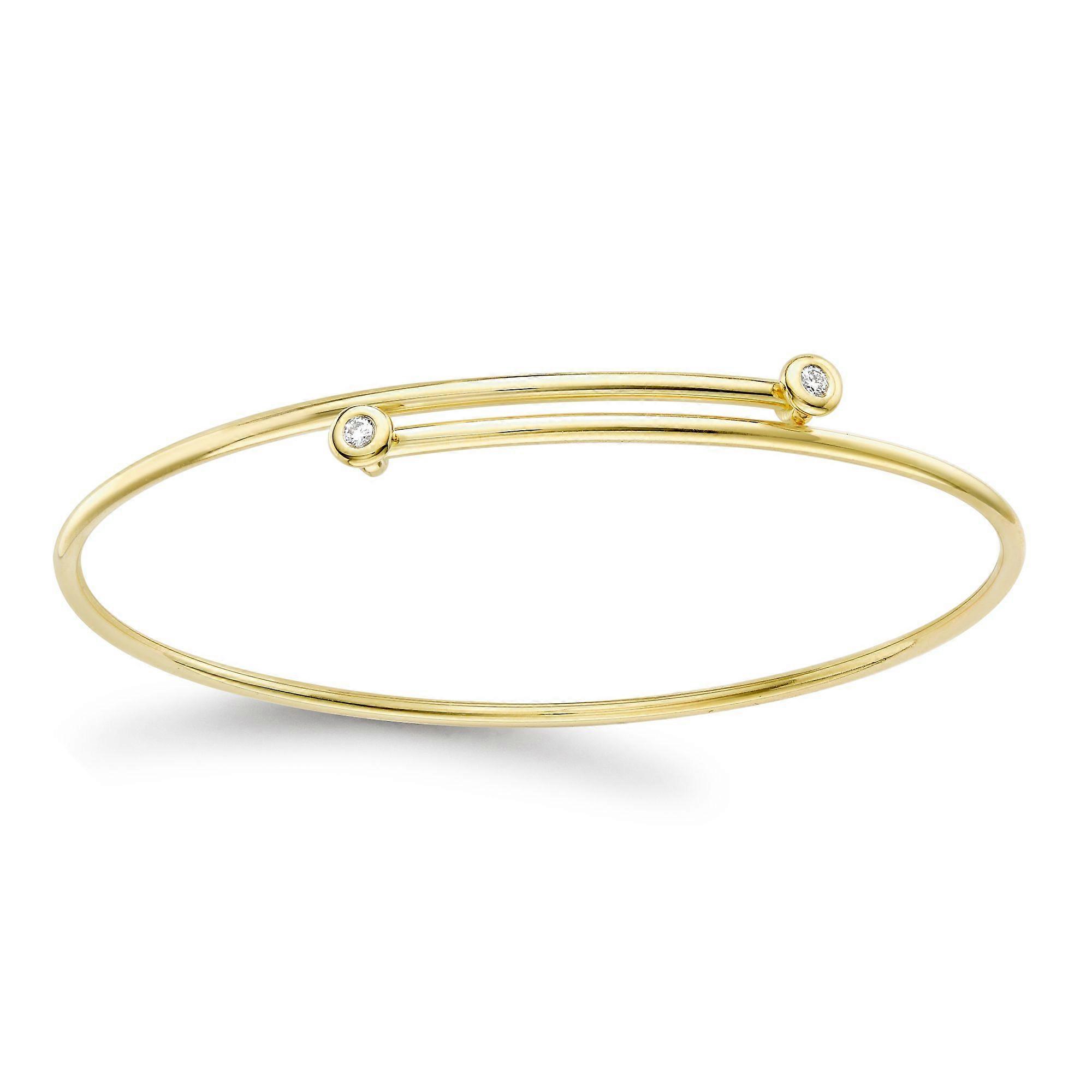 Jewelco London 18ct Yellow Gold Diamond Twin Donut Solitaire Crossover Bangle Bracelet 1.5mm 5pts