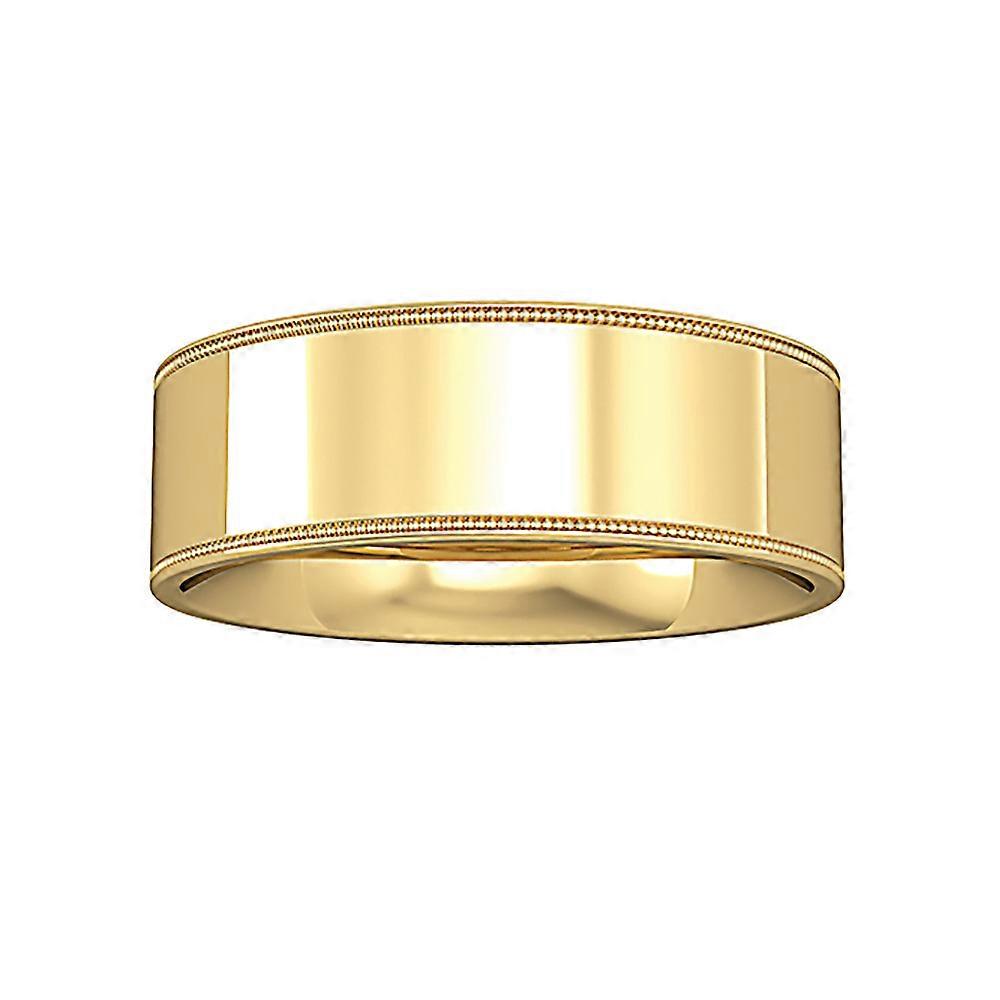 Jewelco London 18ct Yellow Gold Flat-Court Beaded Edge Band Wedding Ring 7mm