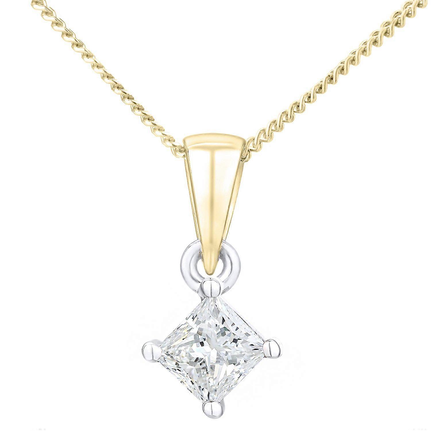 Jewelco London 18ct Yellow Gold Princess 1/3ct Diamond Solitaire Pendant Necklace 18 inch 46cm