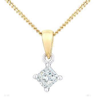Jewelco London 18ct Yellow Gold Princess 1/4ct Diamond Solitaire Pendant Necklace 18 inch 46cm