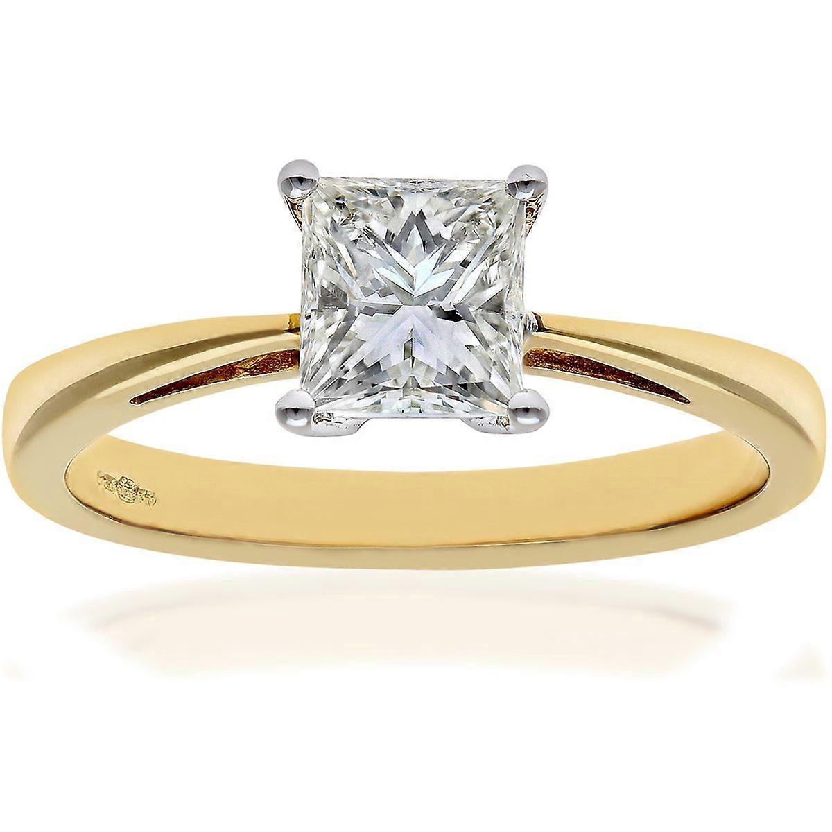 Jewelco London 18ct Yellow Gold Princess 1ct Diamond 4 Claw Solitaire Engagement Ring 6mm